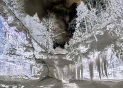 Edytor tapety: Zamarznięty skalny wodospad w lesie