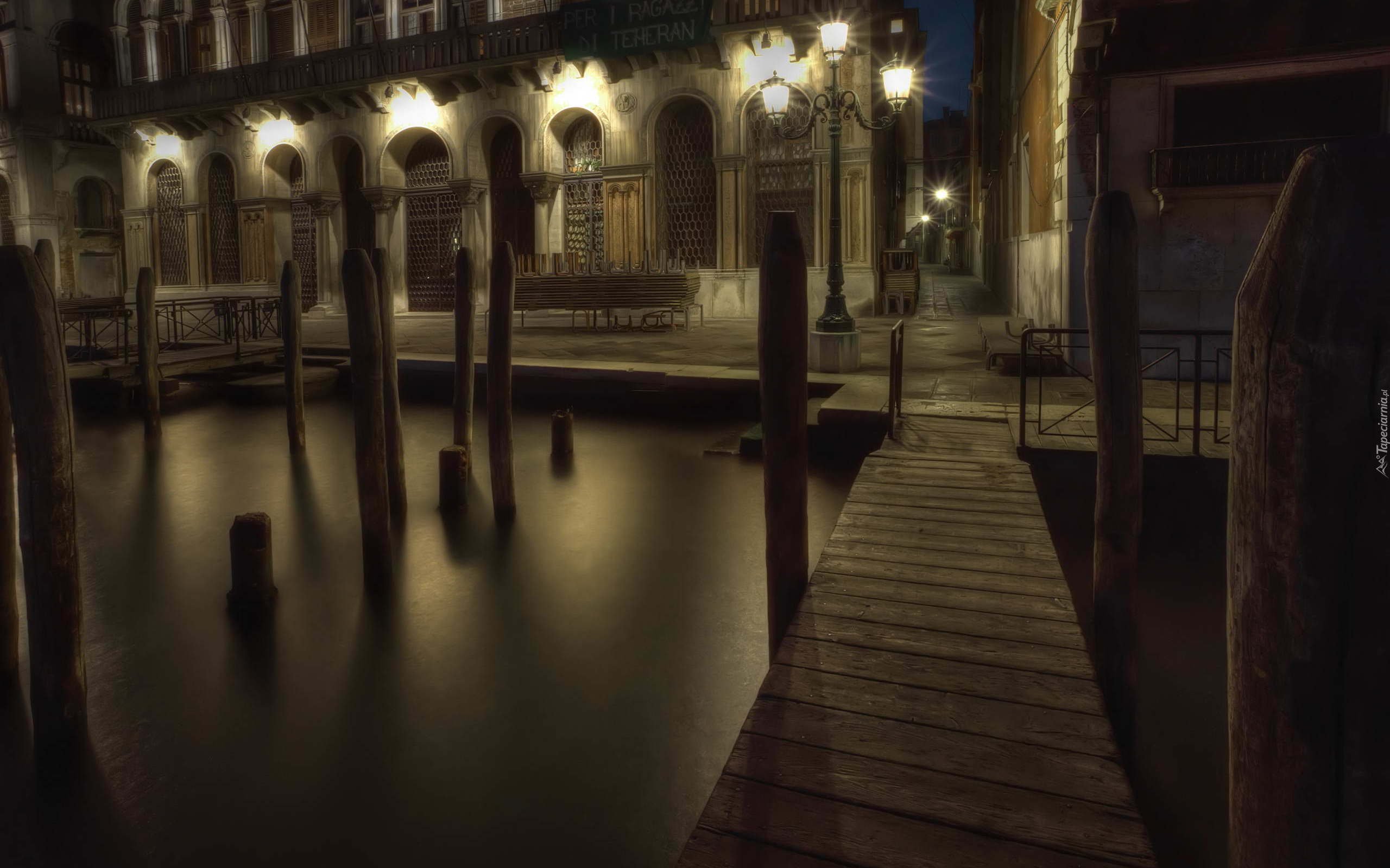Edytor tapety: Oświetlona Wenecja z mostkiem nad wodą