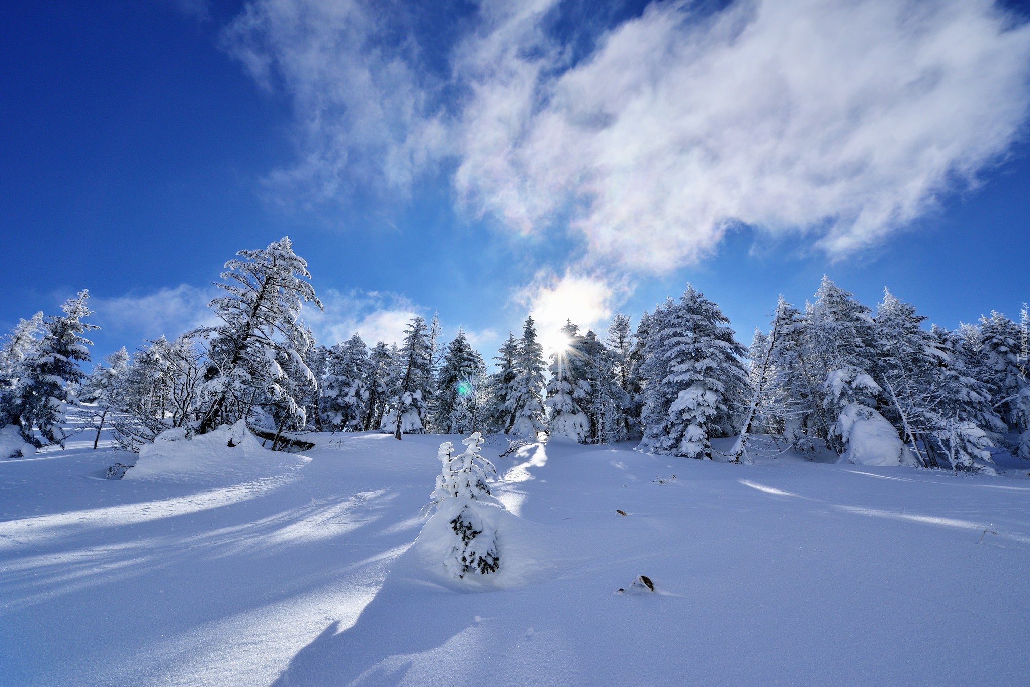 Edytor tapety: Ośnieżone świerki w lesie