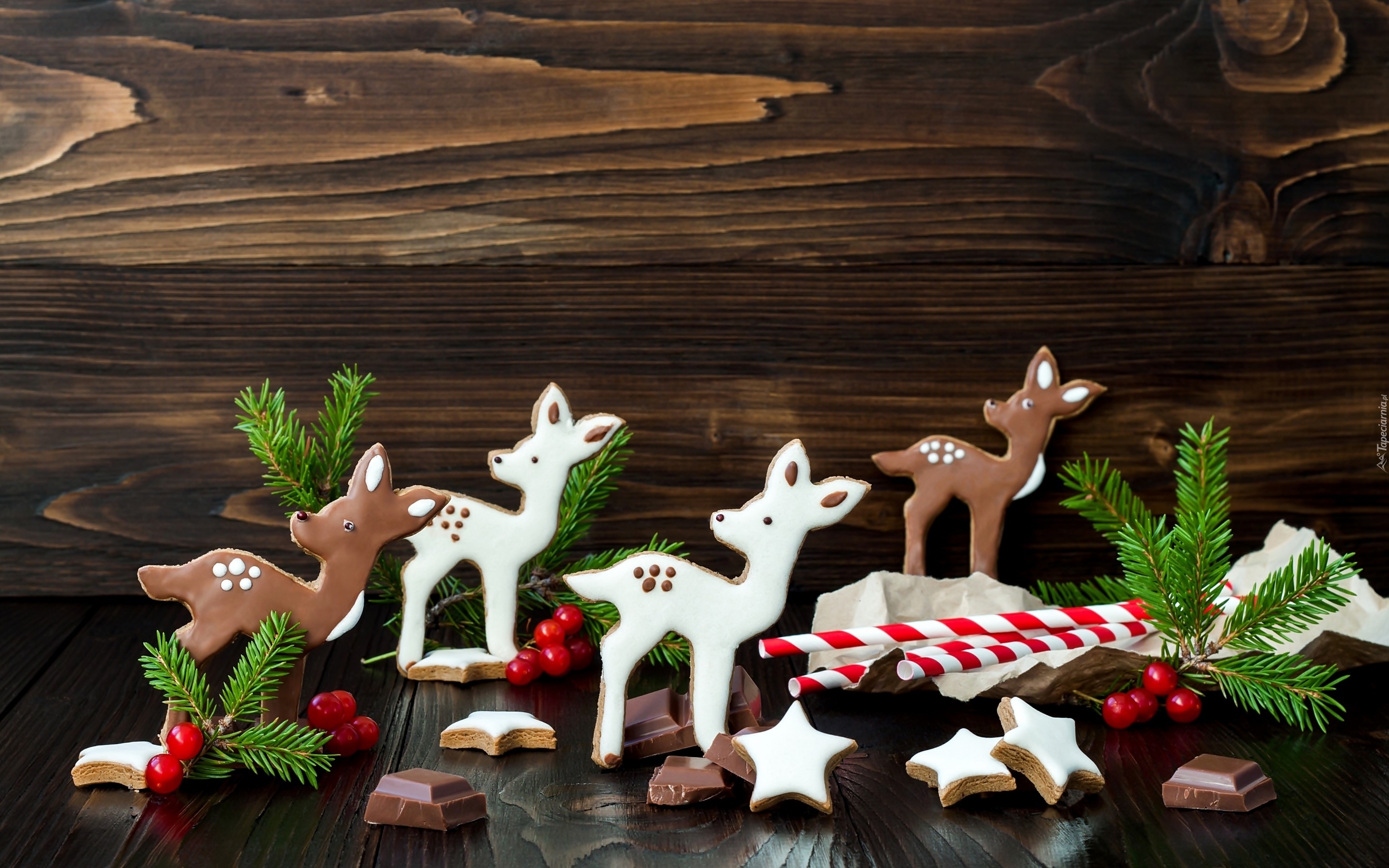 Edytor tapety: Ciastka jelonki i gwiazdki ze świąteczną dekoracją