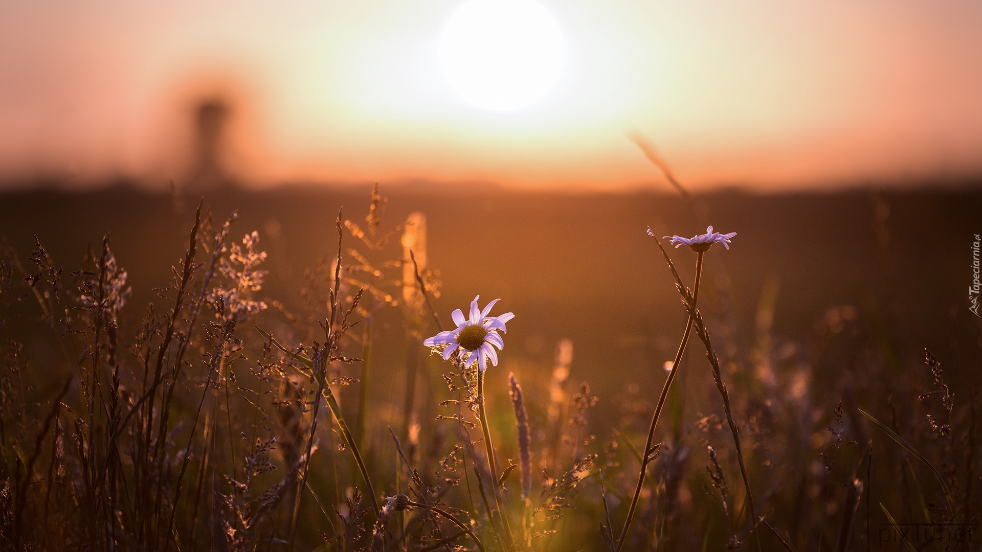 Edytor tapety: Kwiatki na łące w promykach słońca