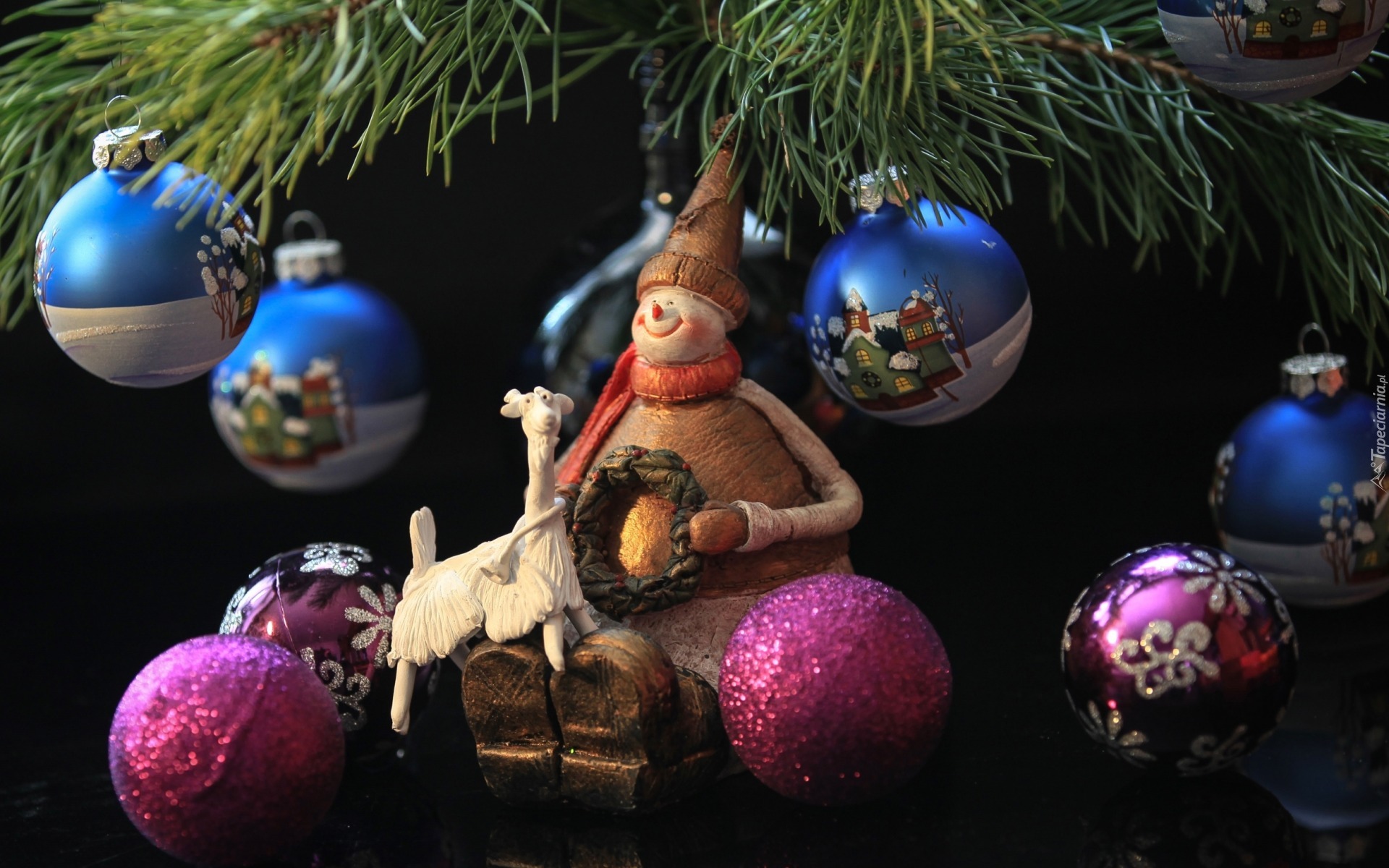 Edytor tapety: Świąteczna dekoracja z ludzikiem i bombkami