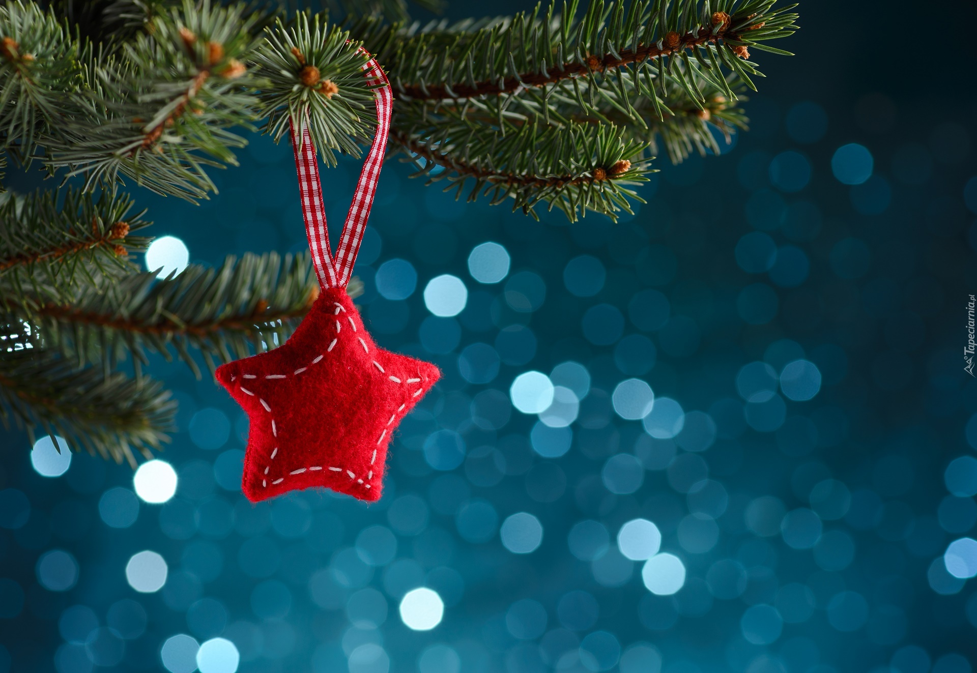 Edytor tapety: Czerwona gwiazdka na świerkowej gałązce