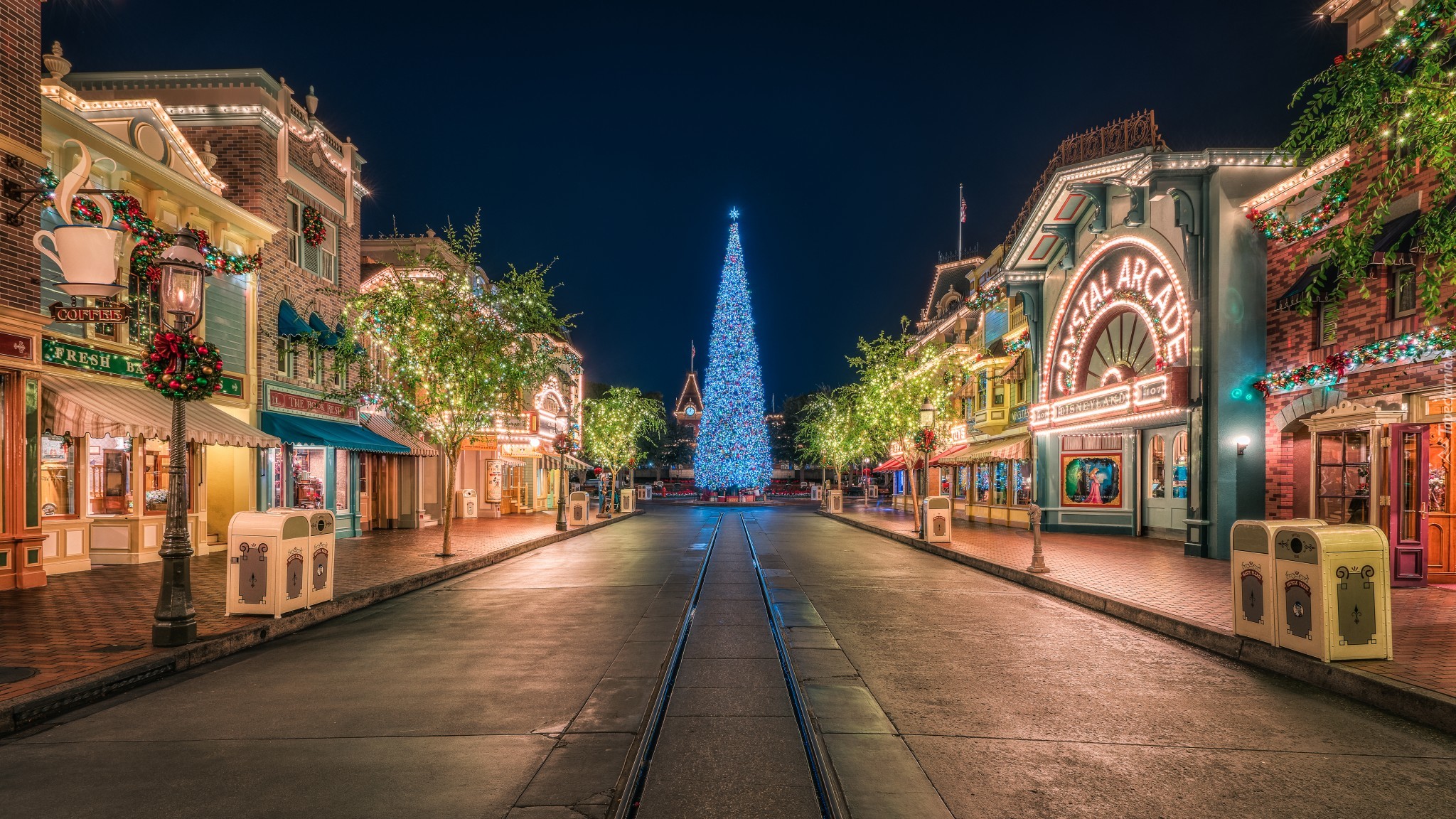 Edytor tapety: Świąteczna choinka w mieście nocą