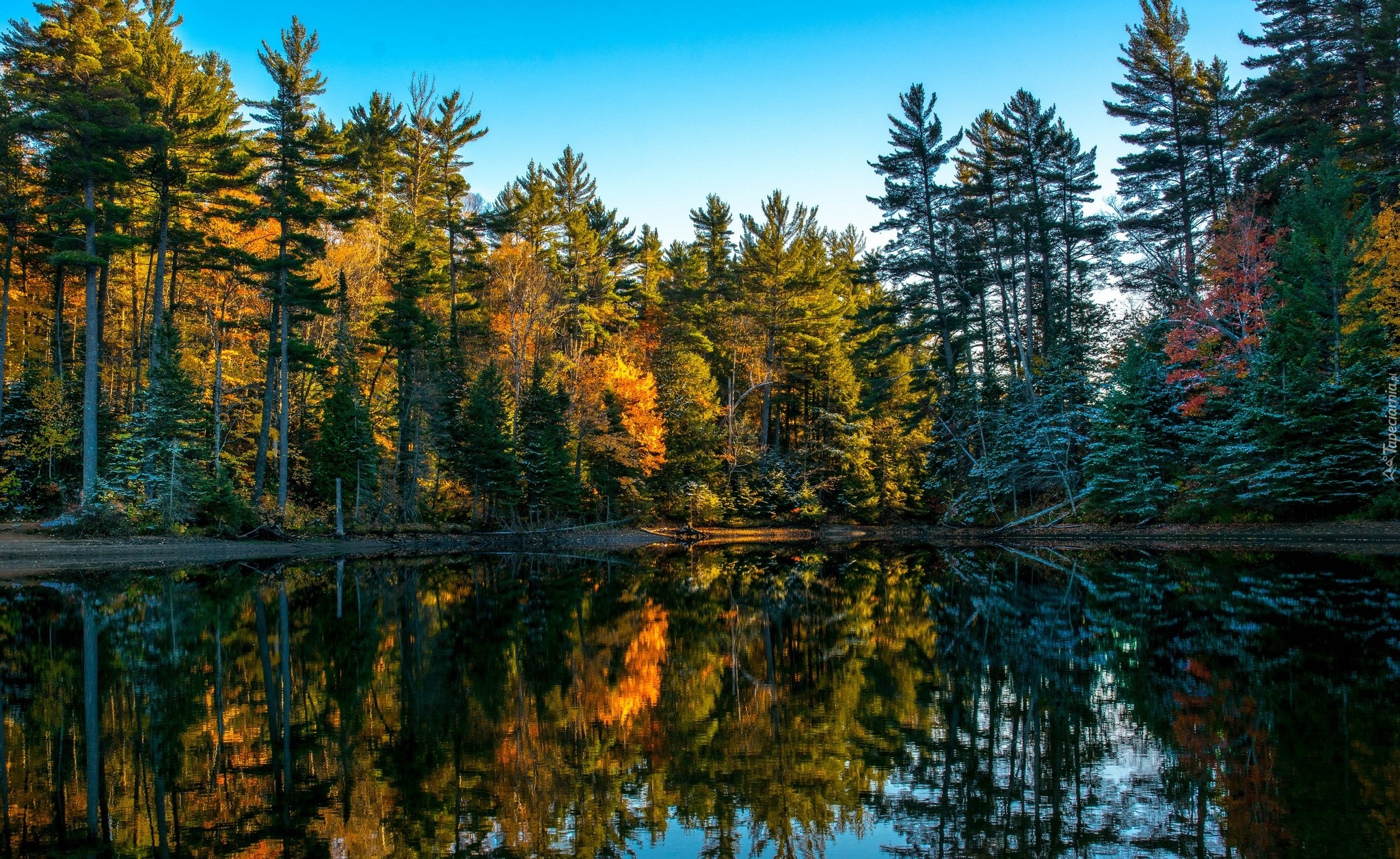 Edytor tapety: Jesienny las w zwierciadle rzeki