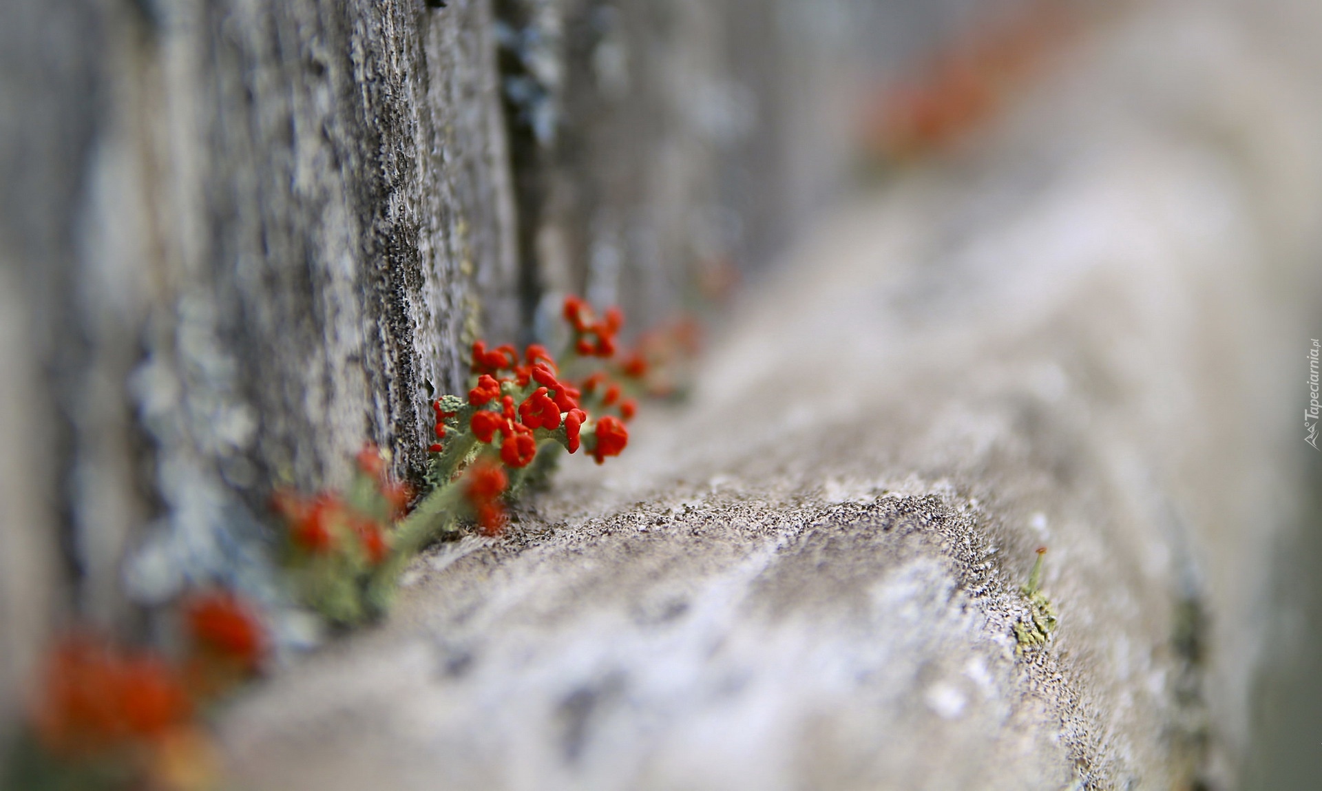Edytor tapety: Czerwone kwiatuszki w makro na rozmytym tle