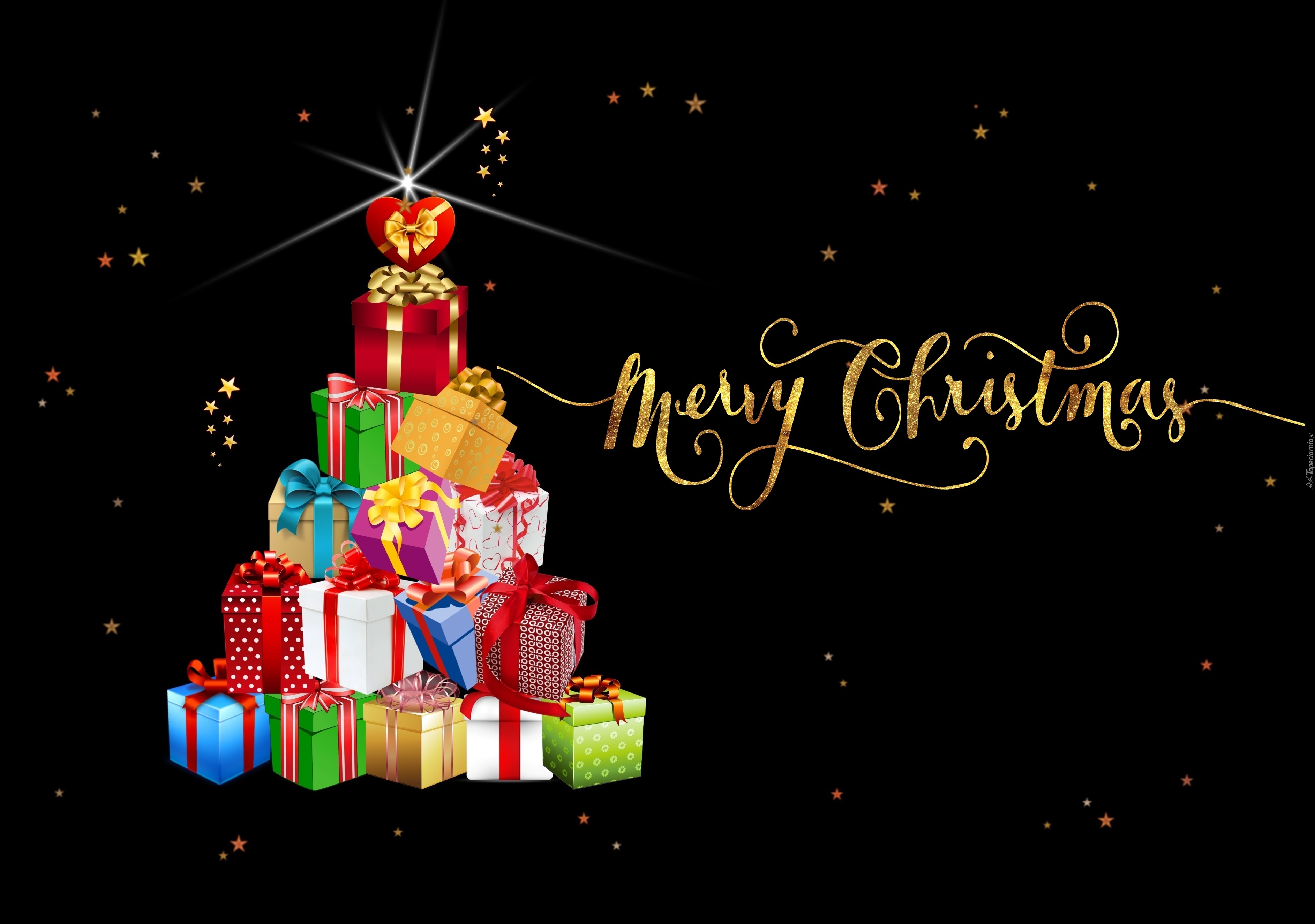 Edytor tapety: Prezenty ułożone w piramidę z serduszkiem na szczycie