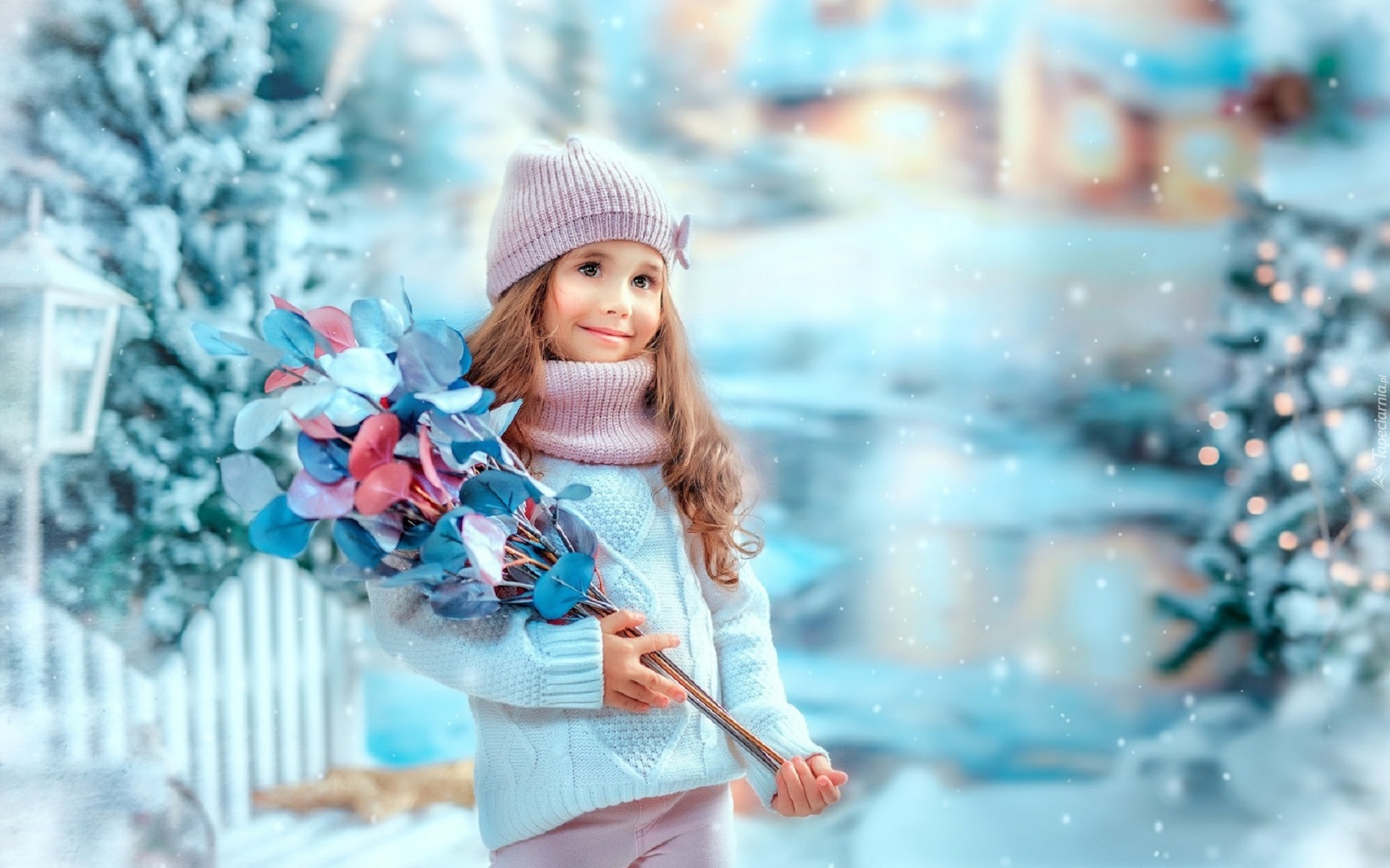 Edytor tapety: Dziewczynka z gałązkami na śniegu