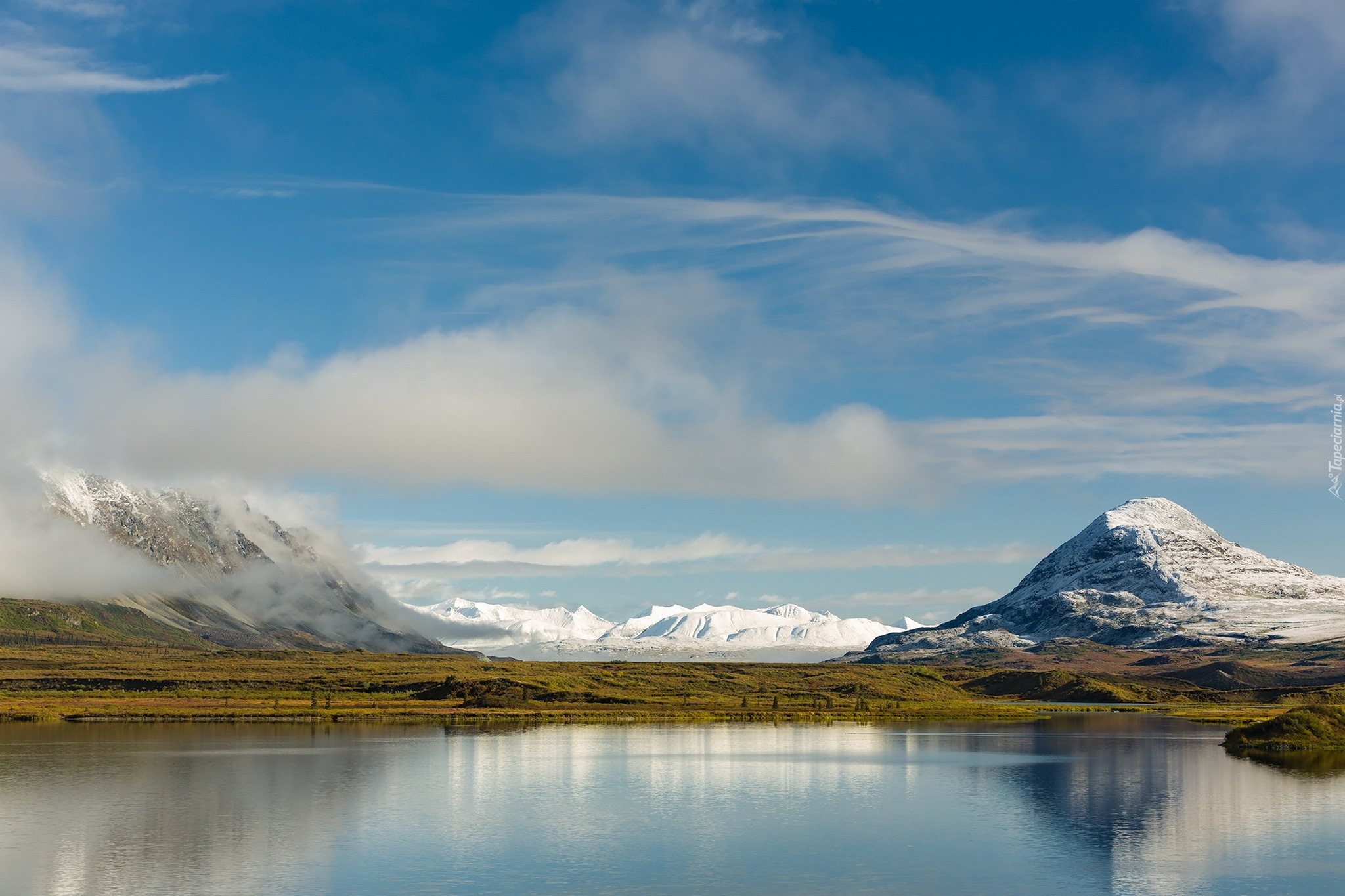 Edytor tapety: Chmury nad górskim jeziorem na Alasce