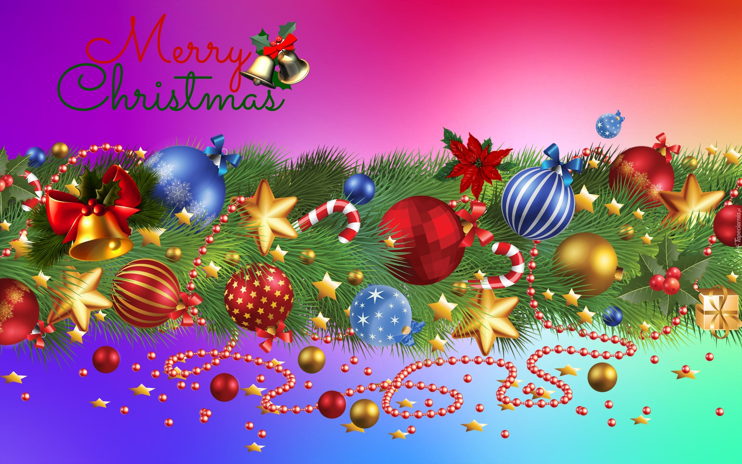Edytor tapety: Gałązka z ozdobami choinkowymi i życzenia świąteczne