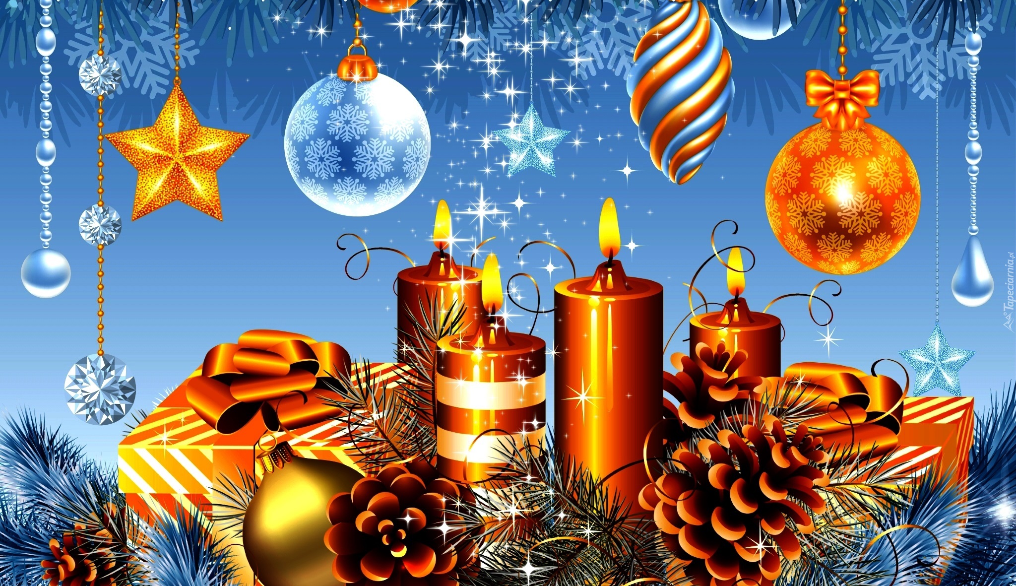 Edytor tapety: Świąteczny stroik i wiszące bombki