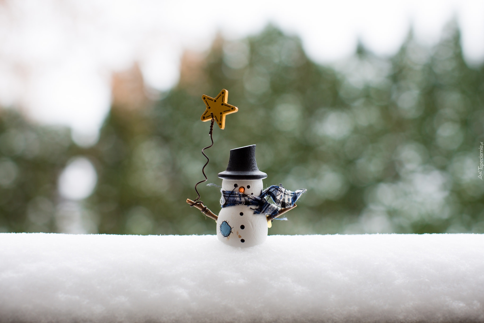 Edytor tapety: Bałwanek z gwiazdką na śniegu