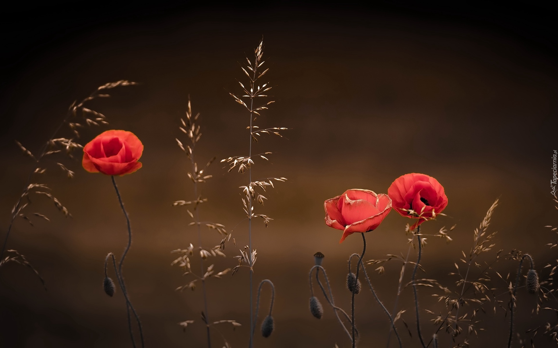 Edytor tapety: Czerwone maki w źdźbłach trawy