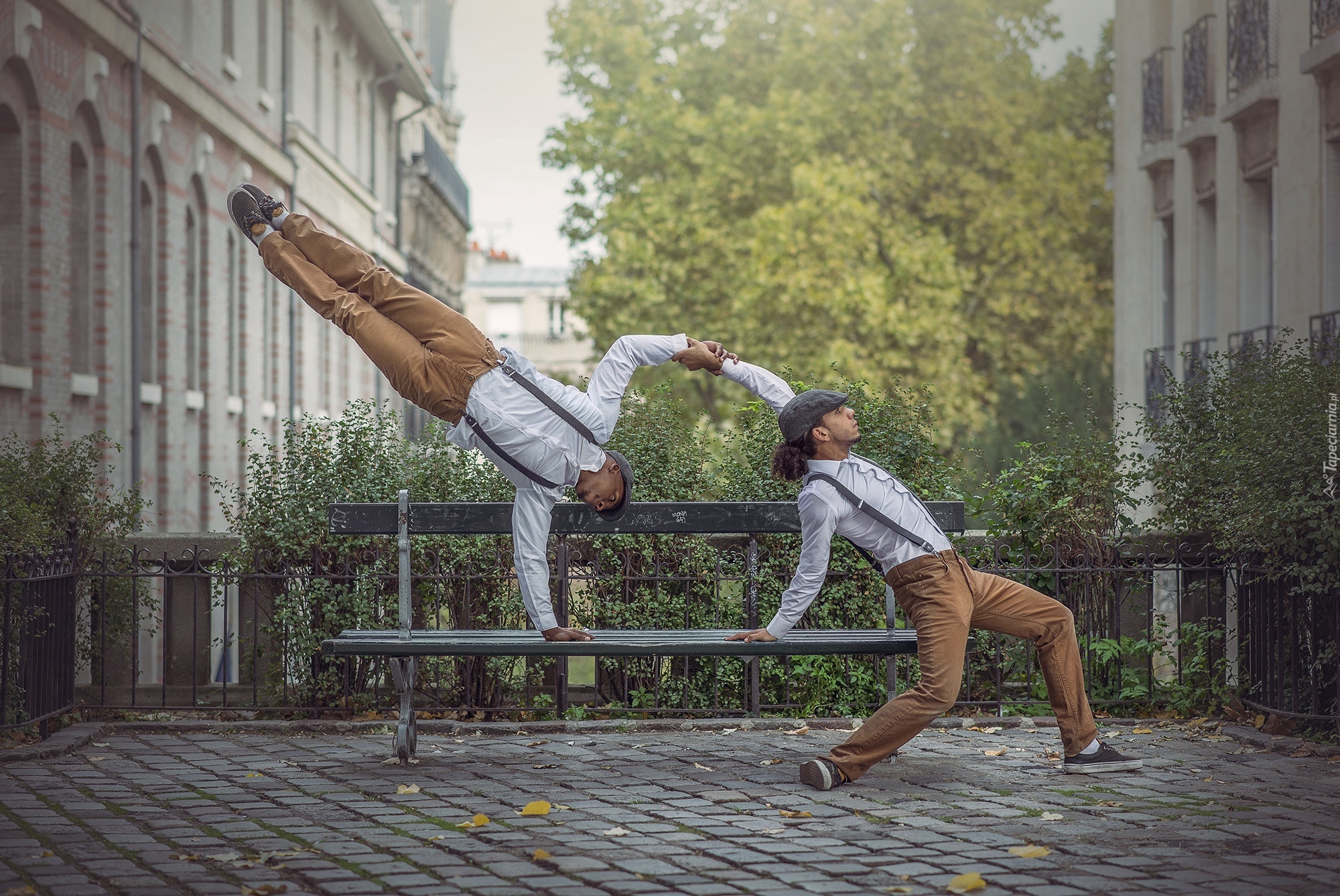 Edytor tapety: Dwaj komedianci w ulicznym pokazie