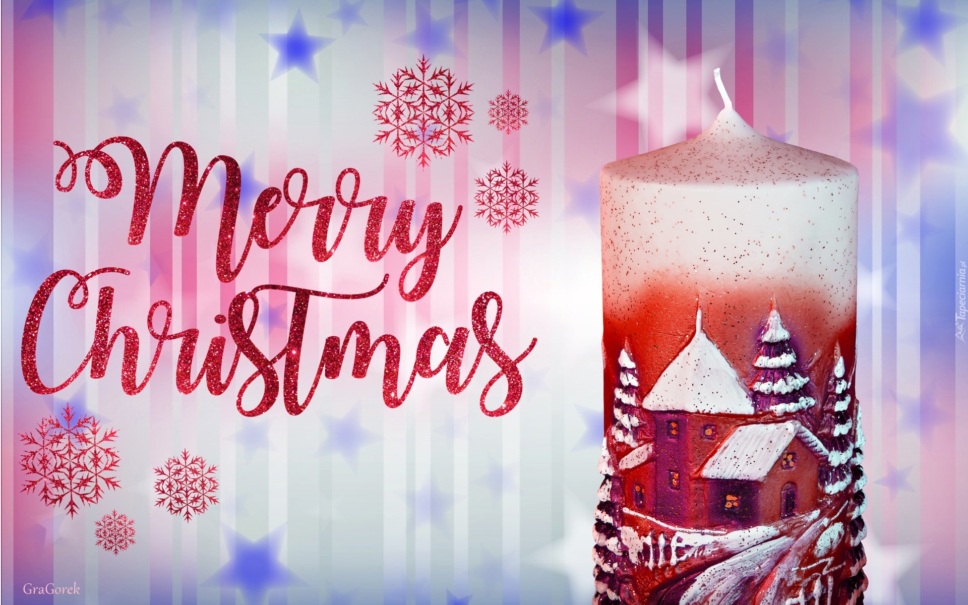 Edytor tapety: Świeczka z zimowym akcentem i życzenia świąteczne