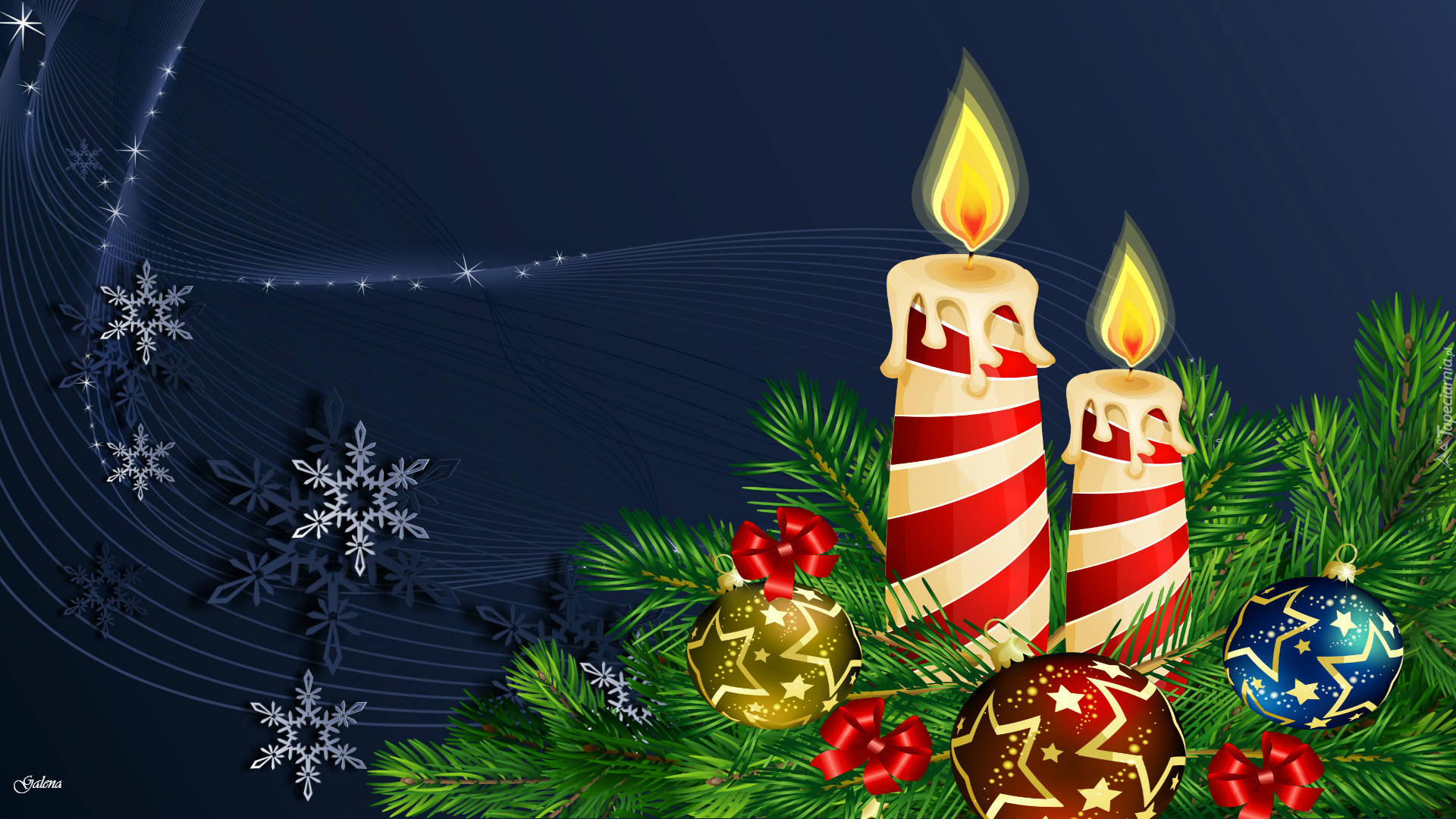 Edytor tapety: Świąteczny stroik z płonącymi świecami w 2D