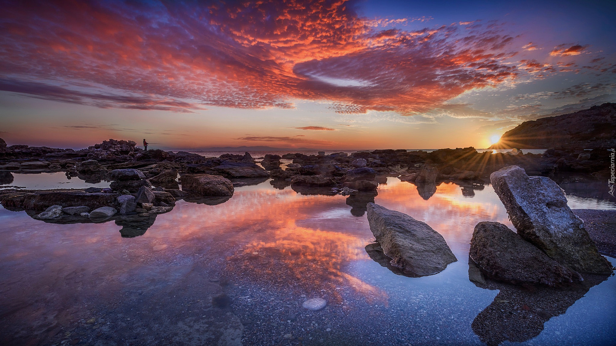 Edytor tapety: Kamieniste jezioro o zachodzie słońca