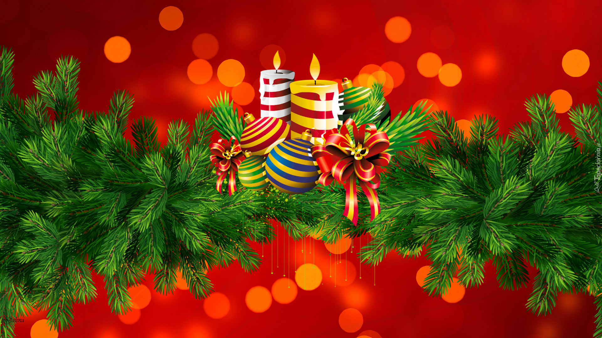 Edytor tapety: Graficzny stroik z świecami i bombkami