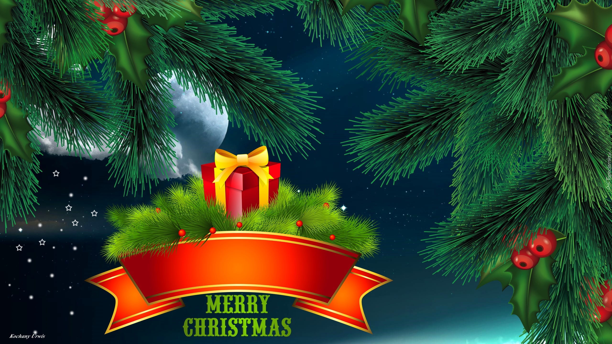 Edytor tapety: Świąteczne życzenia pod gałązkami w blasku księżyca