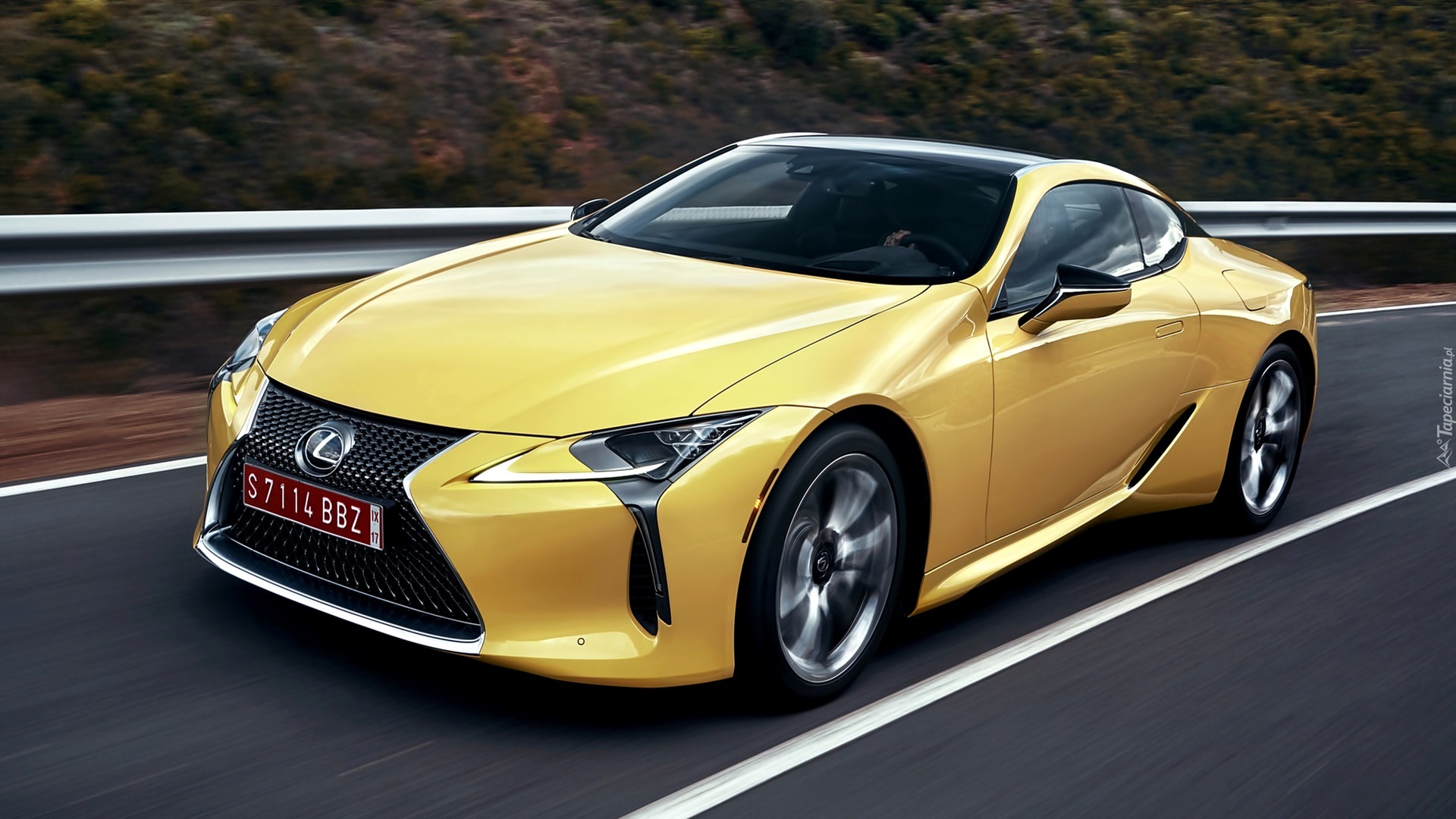 Edytor tapety: Żółty Lexus LC 500 mknie po drodze