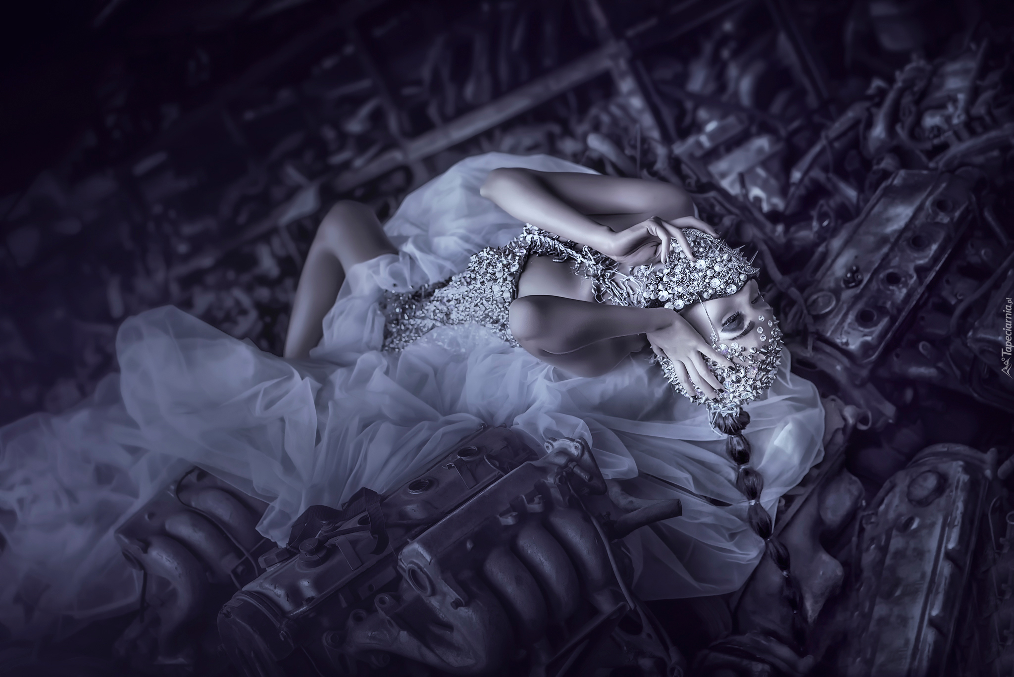 Edytor tapety: Kobieta w sukience z maską