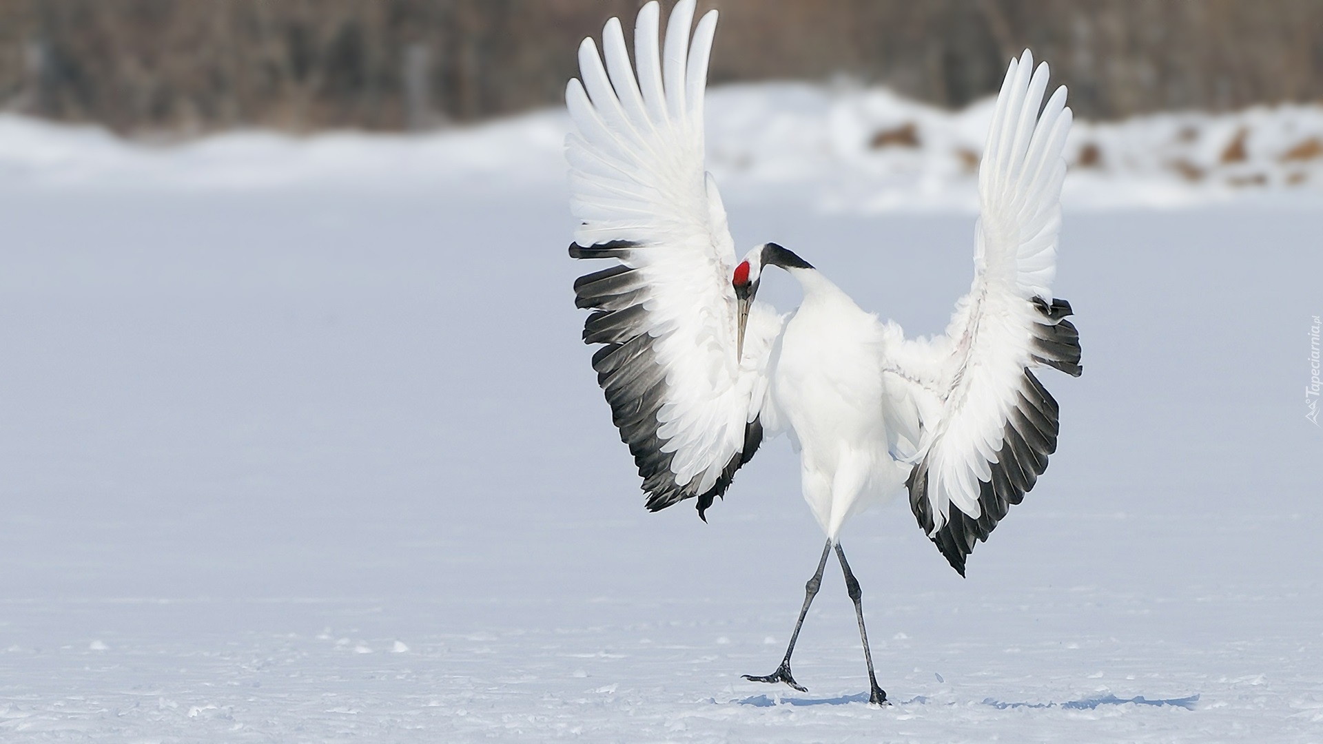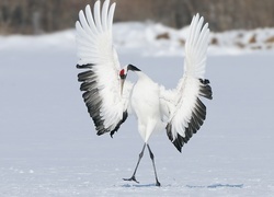 Edytor tapety: Żuraw mandżurski i jego popisowy taniec na śniegu