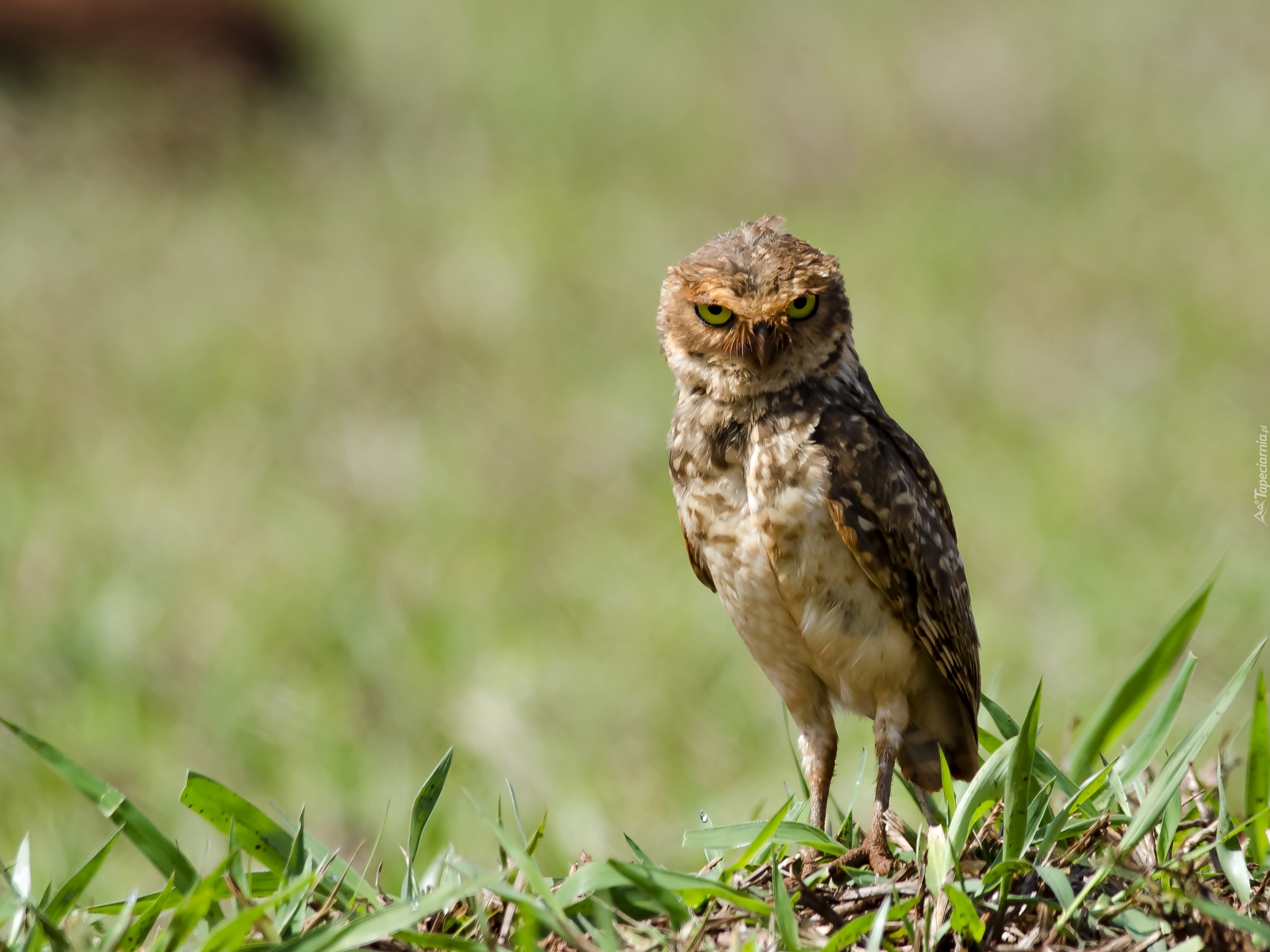 Edytor tapety: Spojrzenie pójdźki ziemnej stojącej w trawie