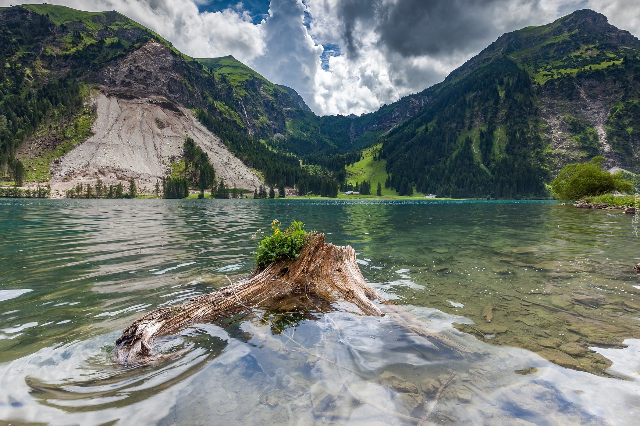 Edytor tapety: Austriackie jezioro u podnóża gór