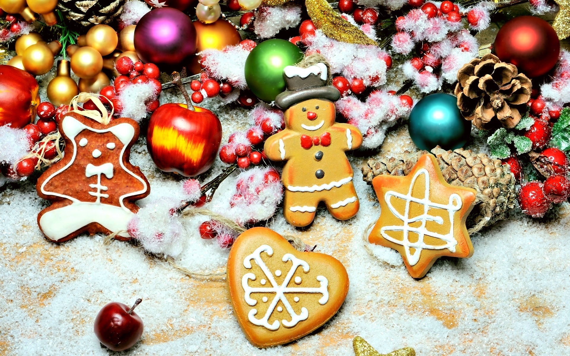 Edytor tapety: Pierniczki, bombki i owoce w świątecznej dekoracji