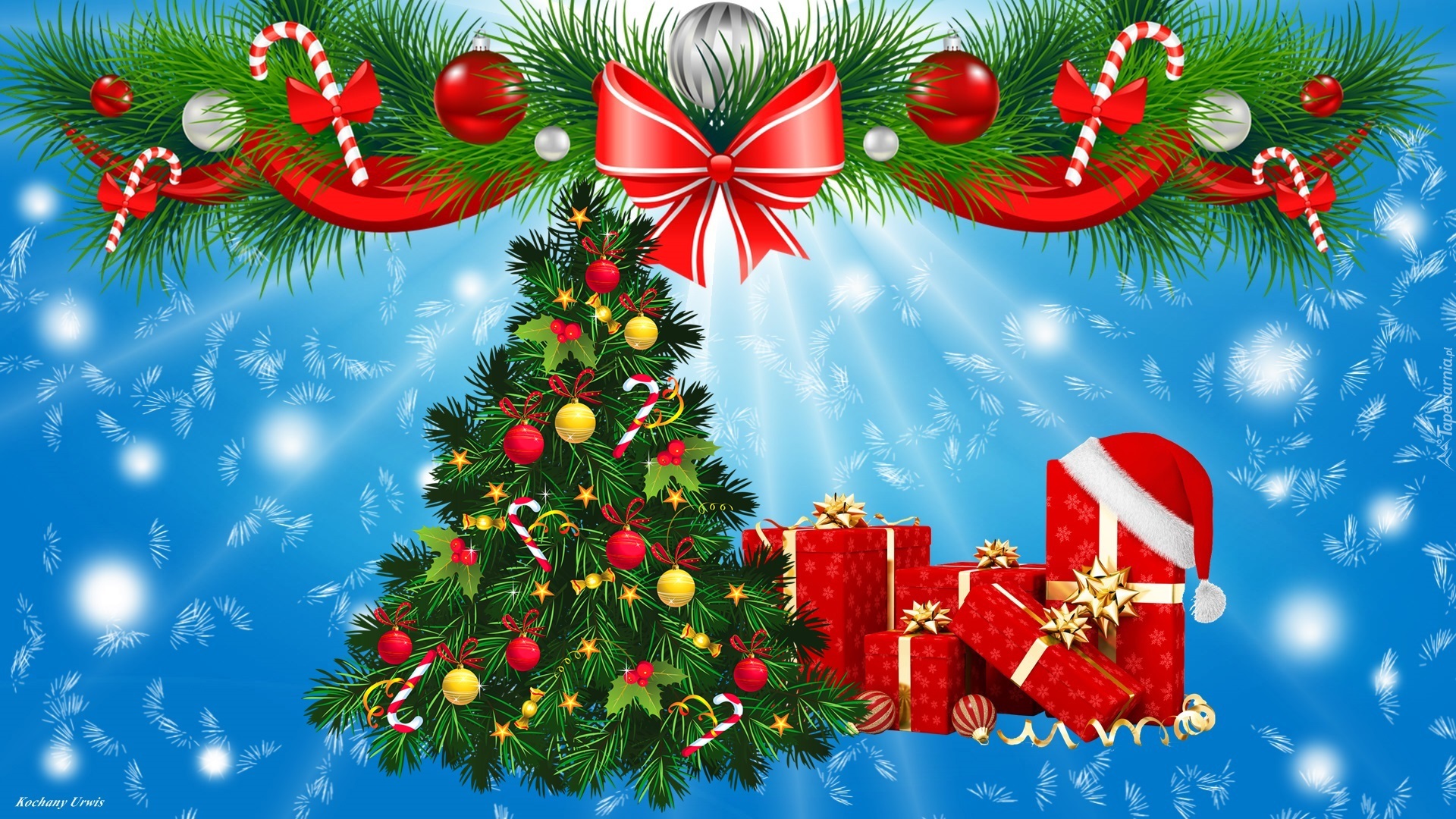 Edytor tapety: Choinka z prezentami w grafice