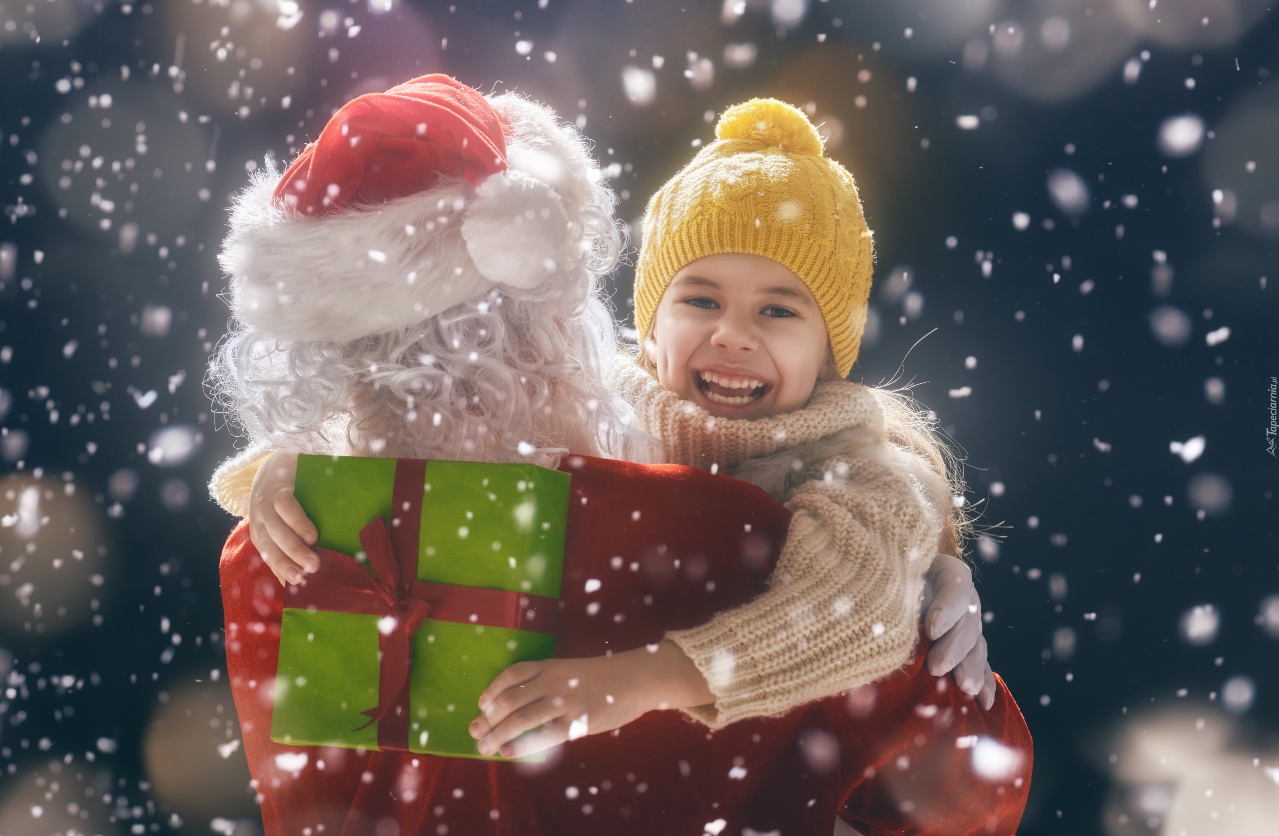 Edytor tapety: Szczęśliwa dziewczynka dziękuje Mikołajowi za prezent