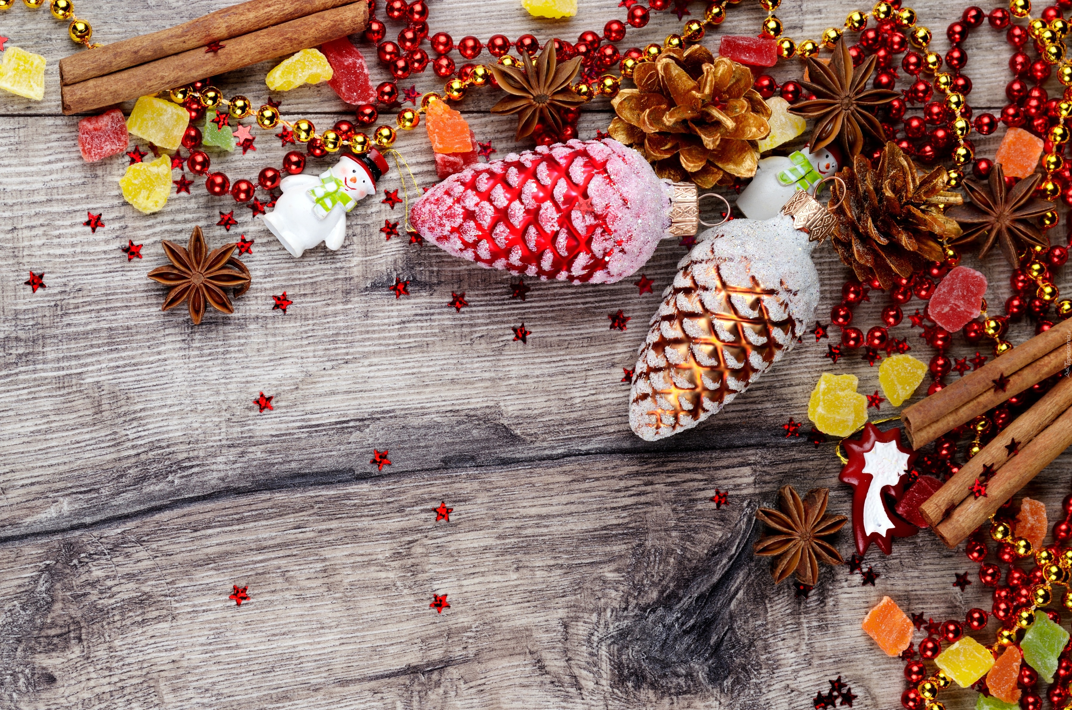 Edytor tapety: Ozdoby w świątecznej dekoracji na deskach