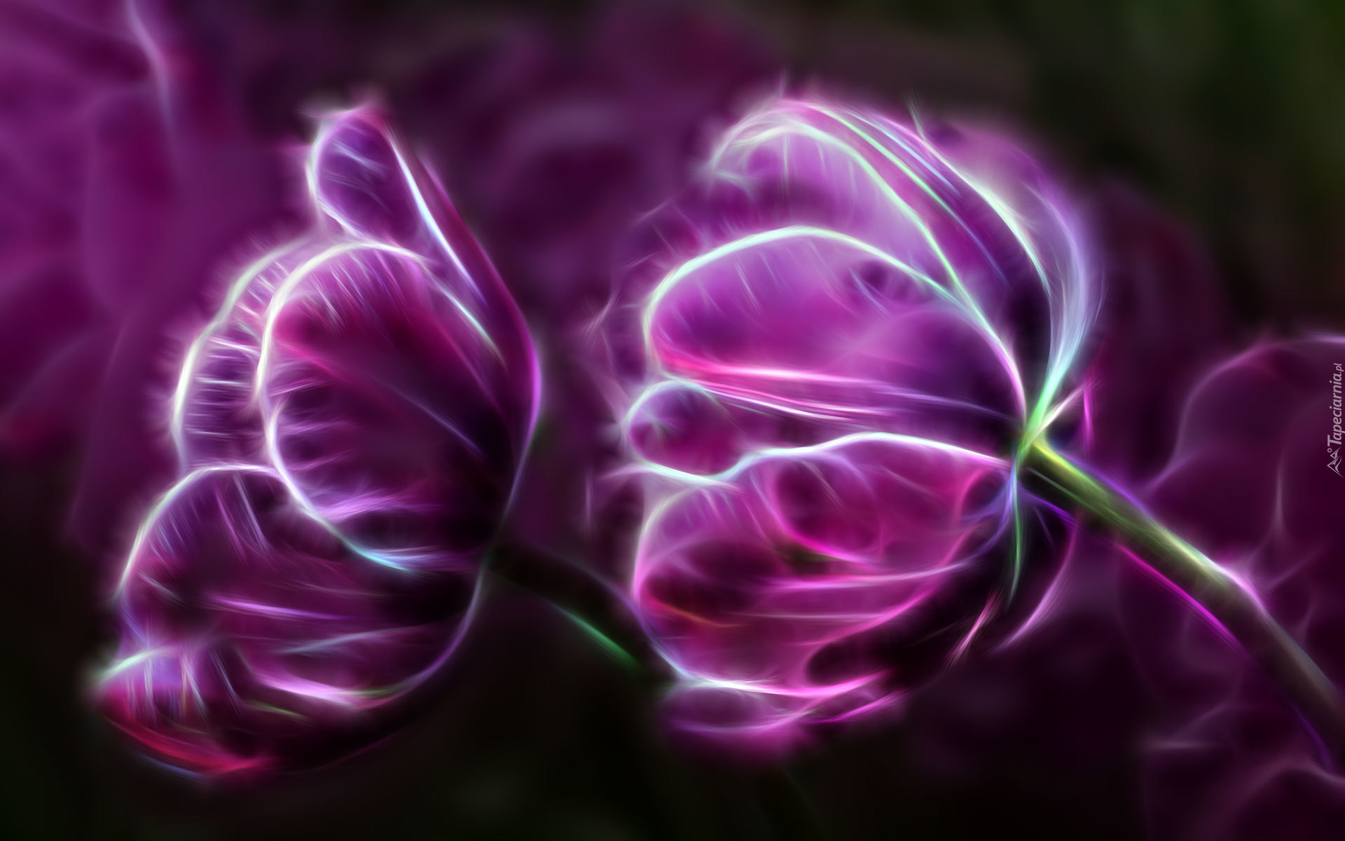 Edytor tapety: Fioletowe tulipany w grafice fractalius