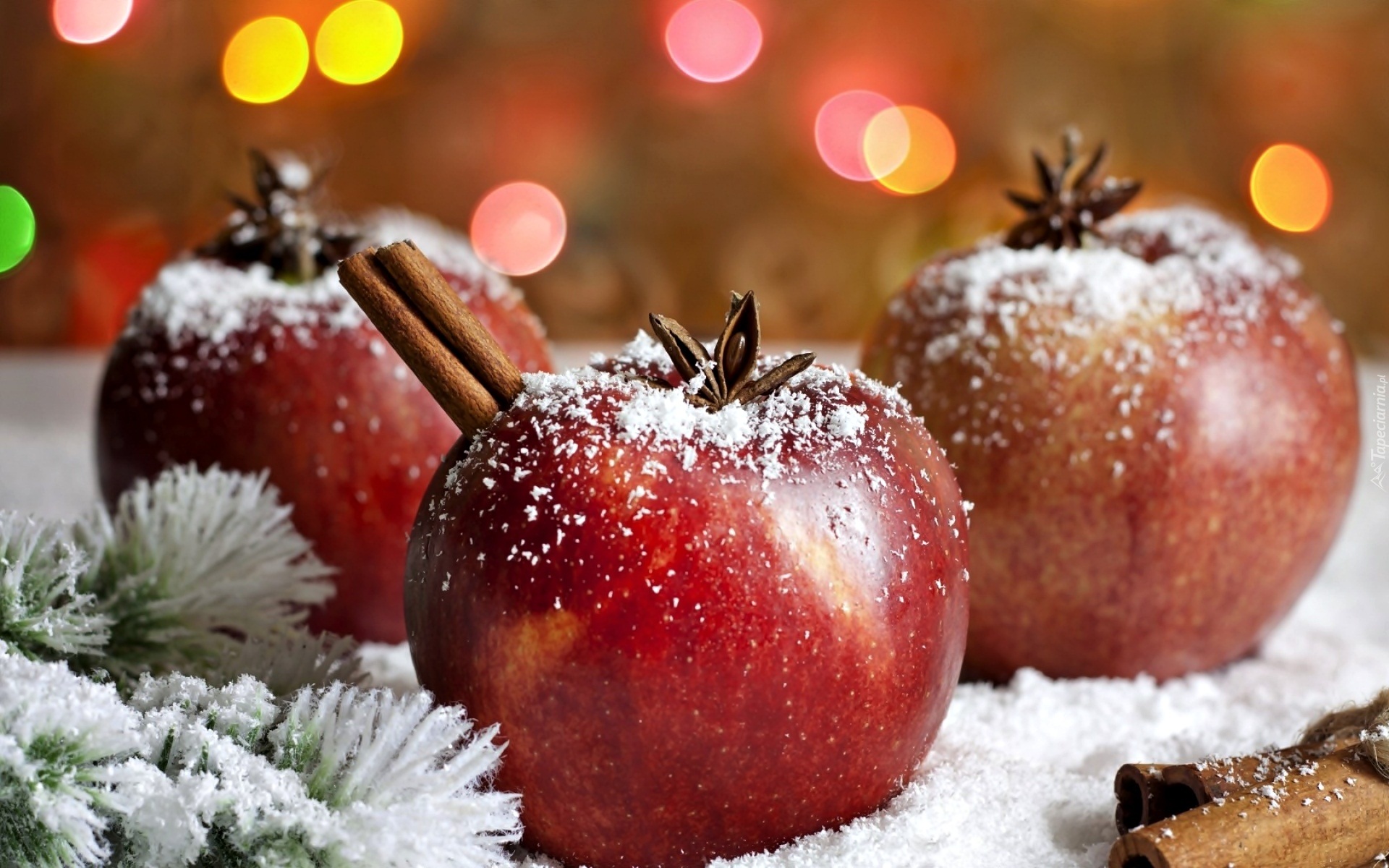 Edytor tapety: Jabłka z cynamonem na śniegu