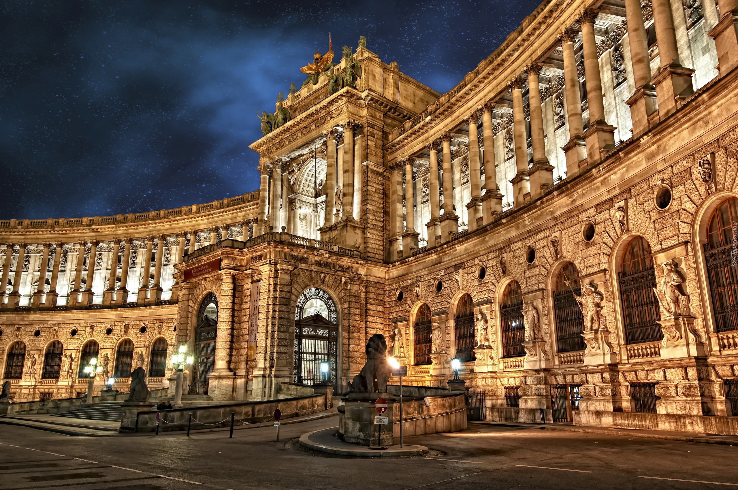 Edytor tapety: Oświetlony pałac Hofburg w Wiedniu nocą