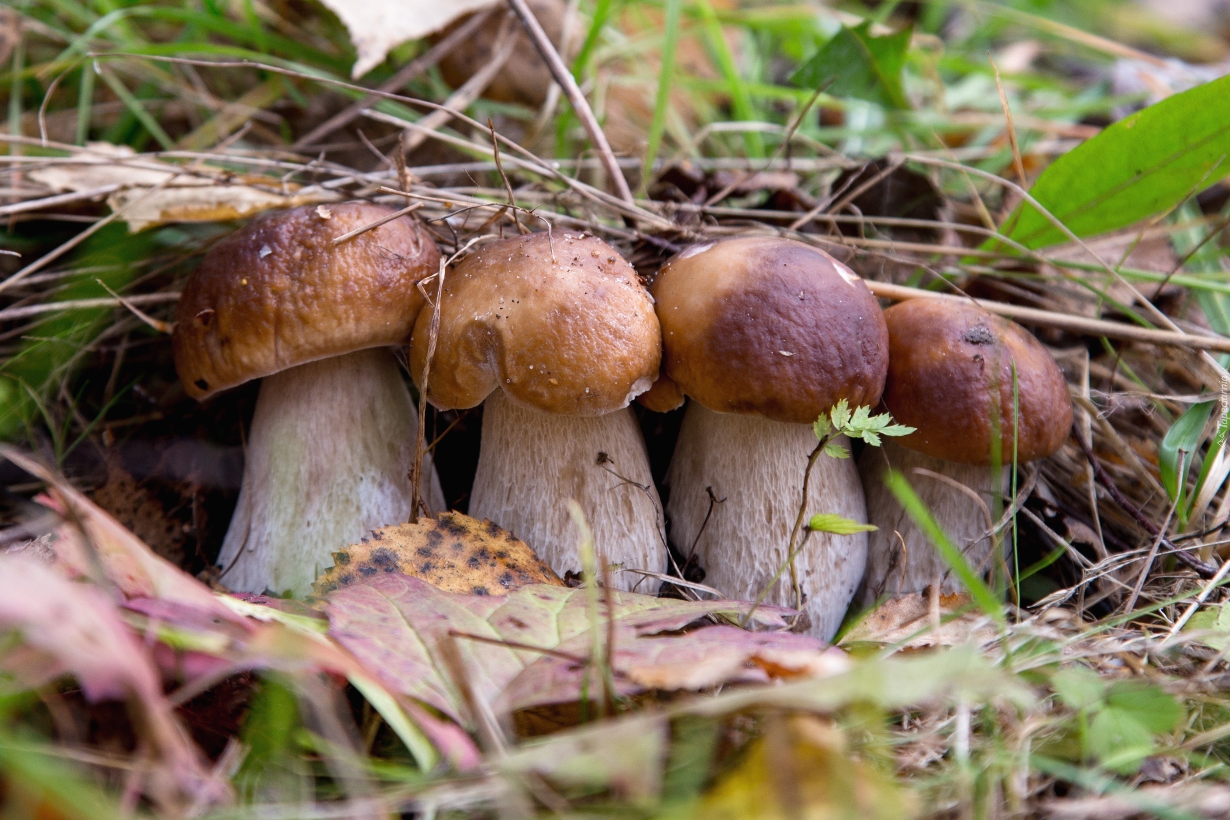 Edytor tapety: Grzyby borowiki schowane w liściach
