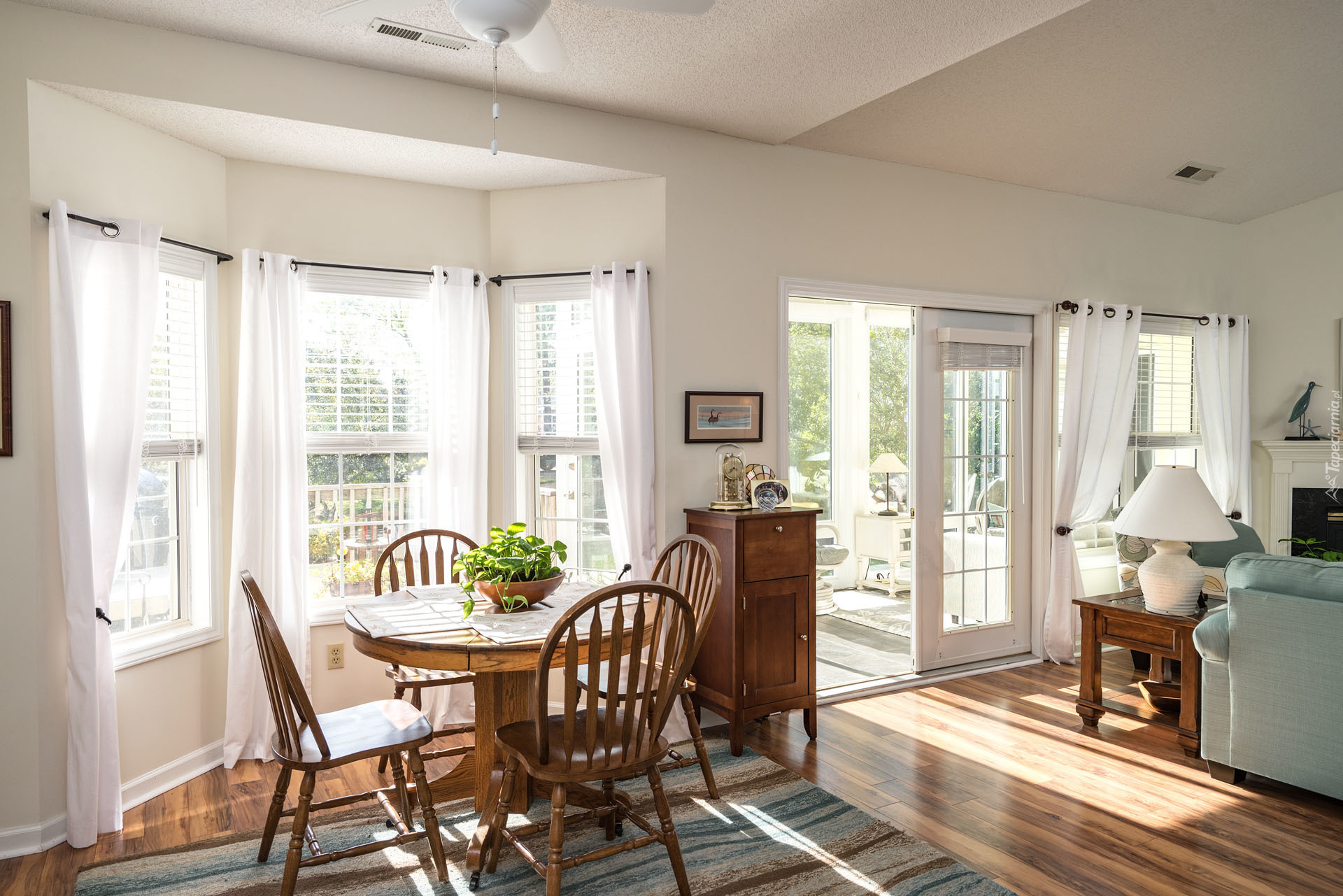 Edytor tapety: Wnętrze salonu z jadalnią przy oknie