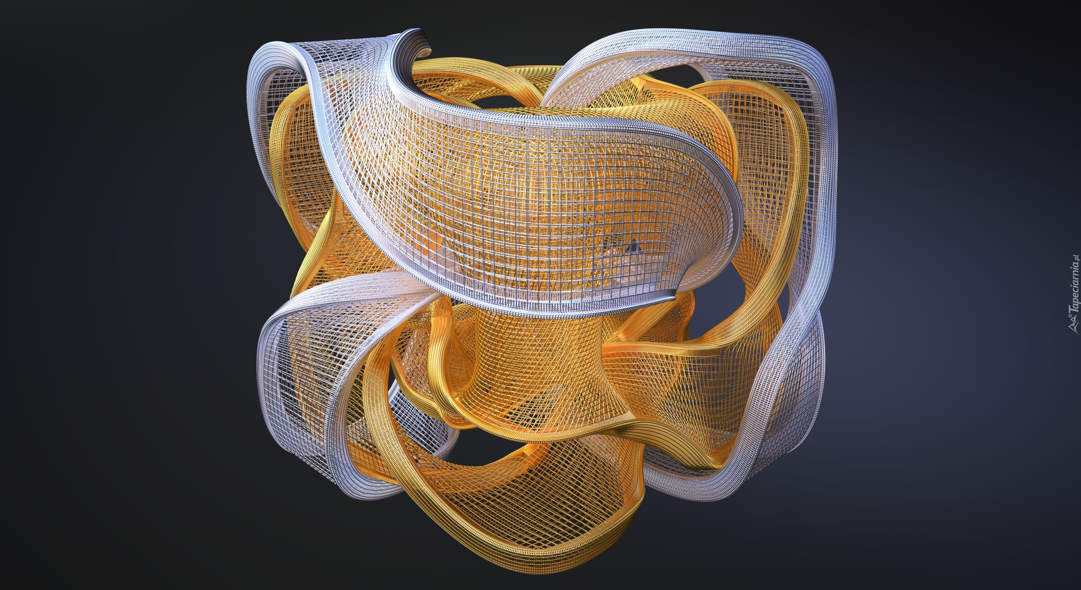 Edytor tapety: Wektorowa grafika 3D ze srebrno-złotym obiektem