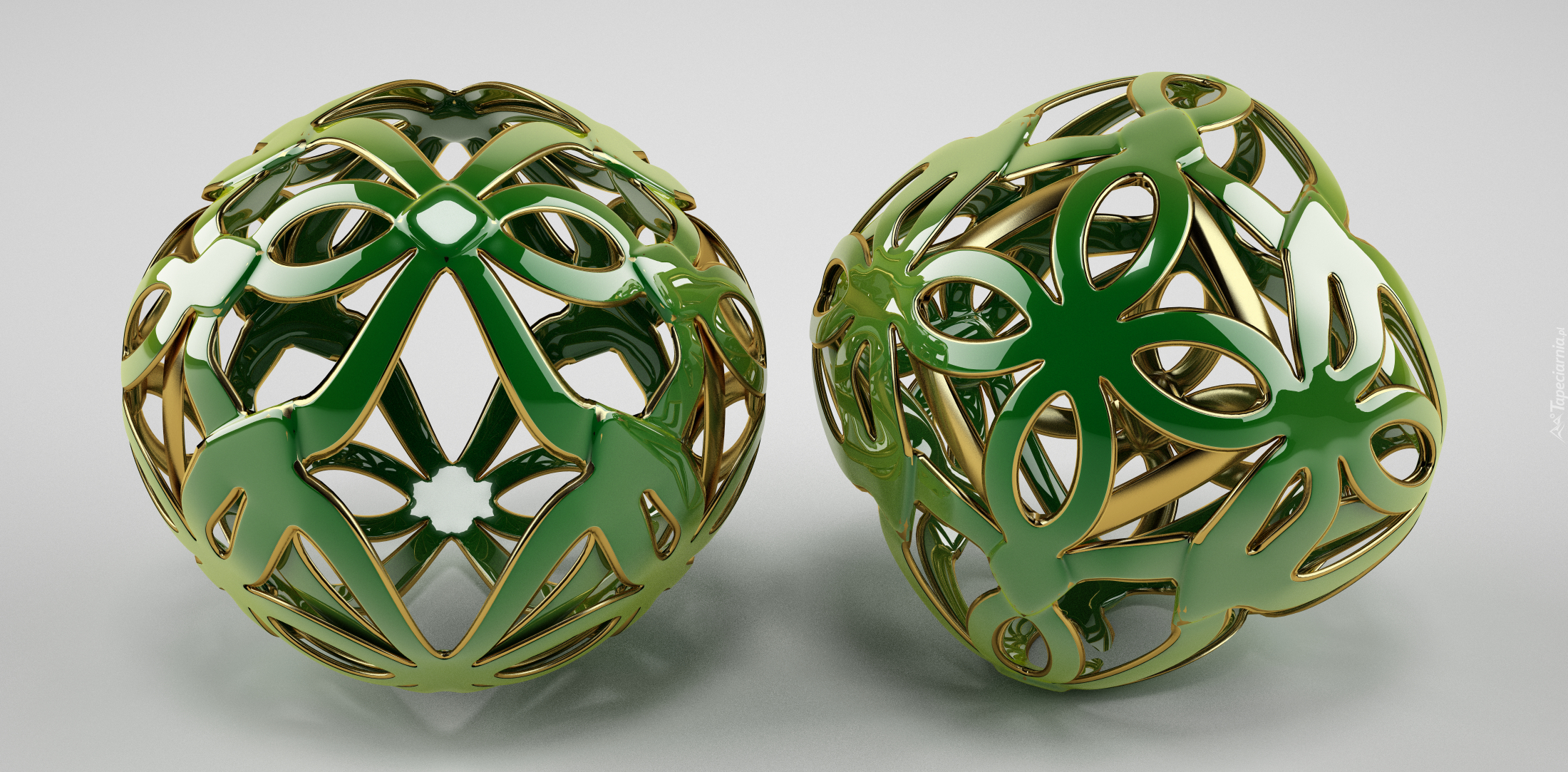 Edytor tapety: Zielono-złote obiekty w grafice 3D