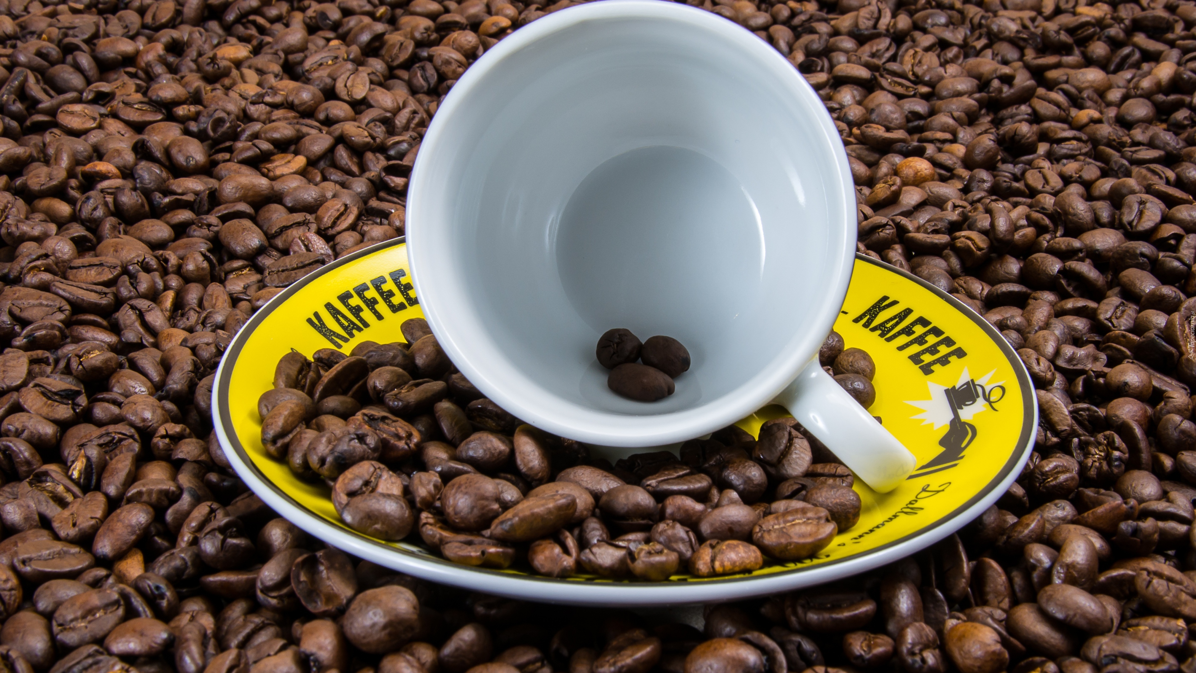 Edytor tapety: Filiżanka i rozsypane ziarna kawy