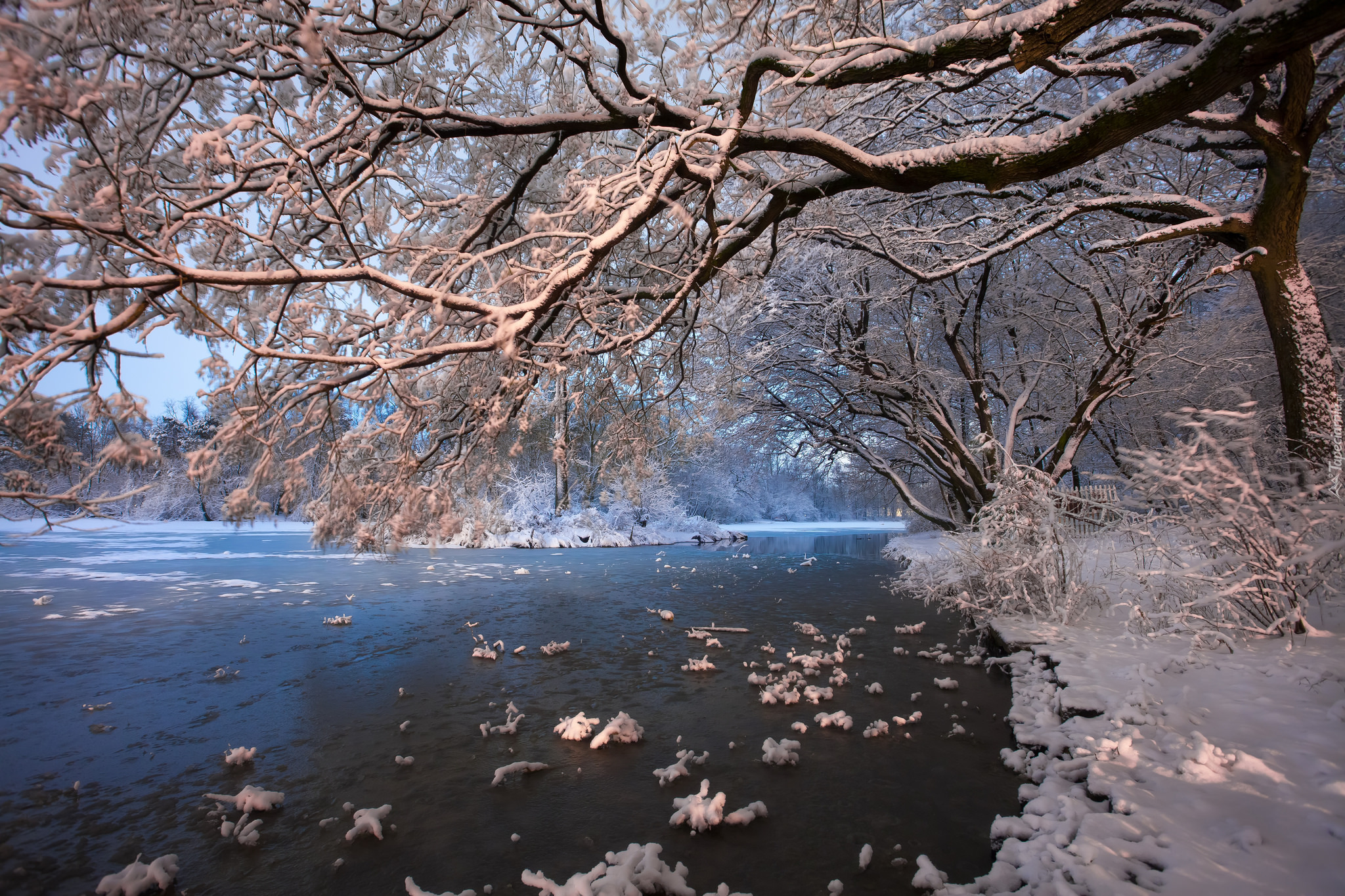 Edytor tapety: Ośnieżone drzewa nad rzeką