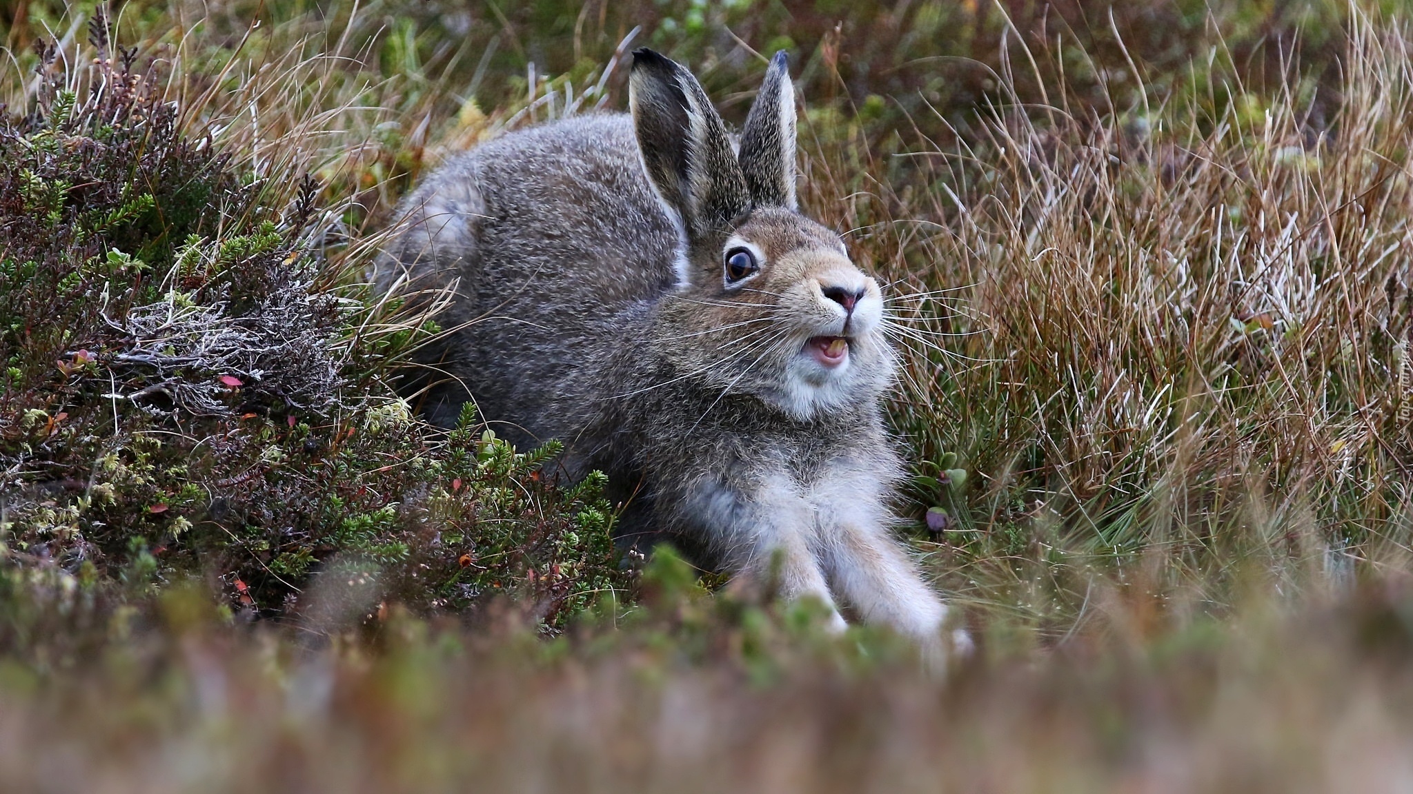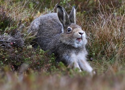 Edytor tapety: Zając przeciąga się w trawie