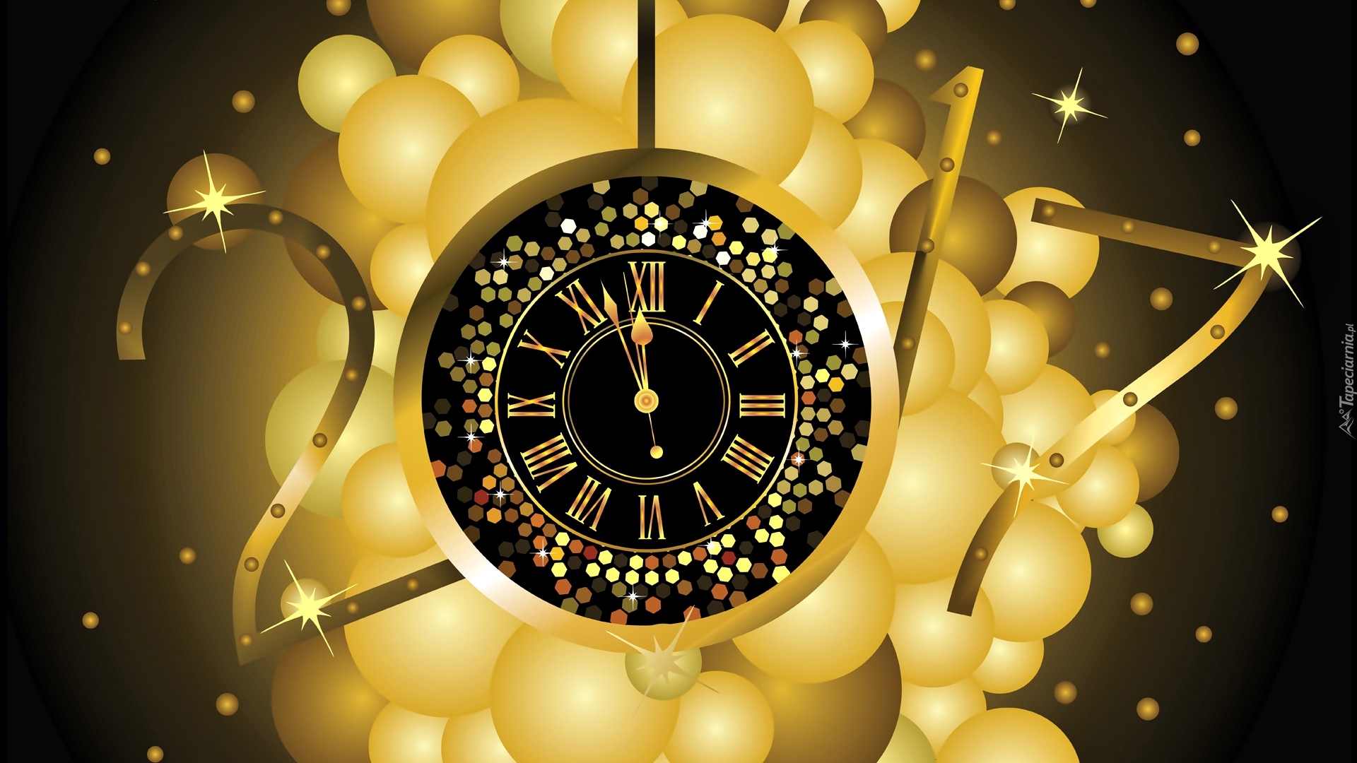 Edytor tapety: Noworoczna grafika 2017 z zegarem i balonikami