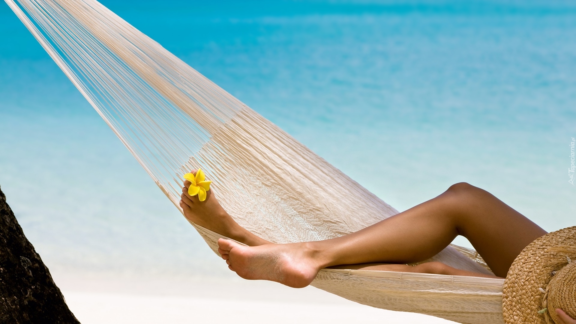 Edytor tapety: Kobiece nogi na hamaku nad letnim morzem