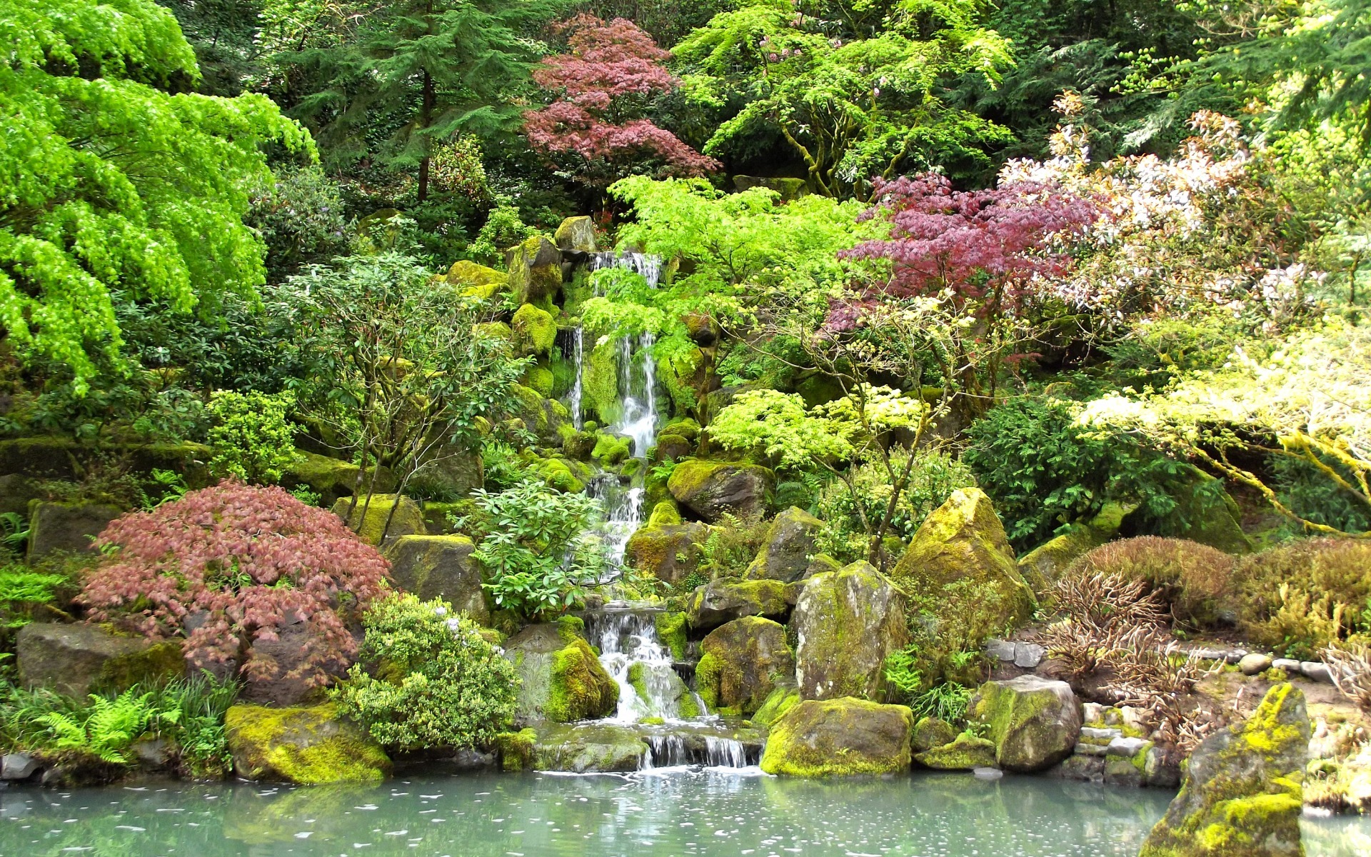 Edytor tapety: Kaskada wśród kamieni i roślinności