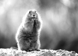Edytor tapety: Przestraszony świstak na rozmytym tle