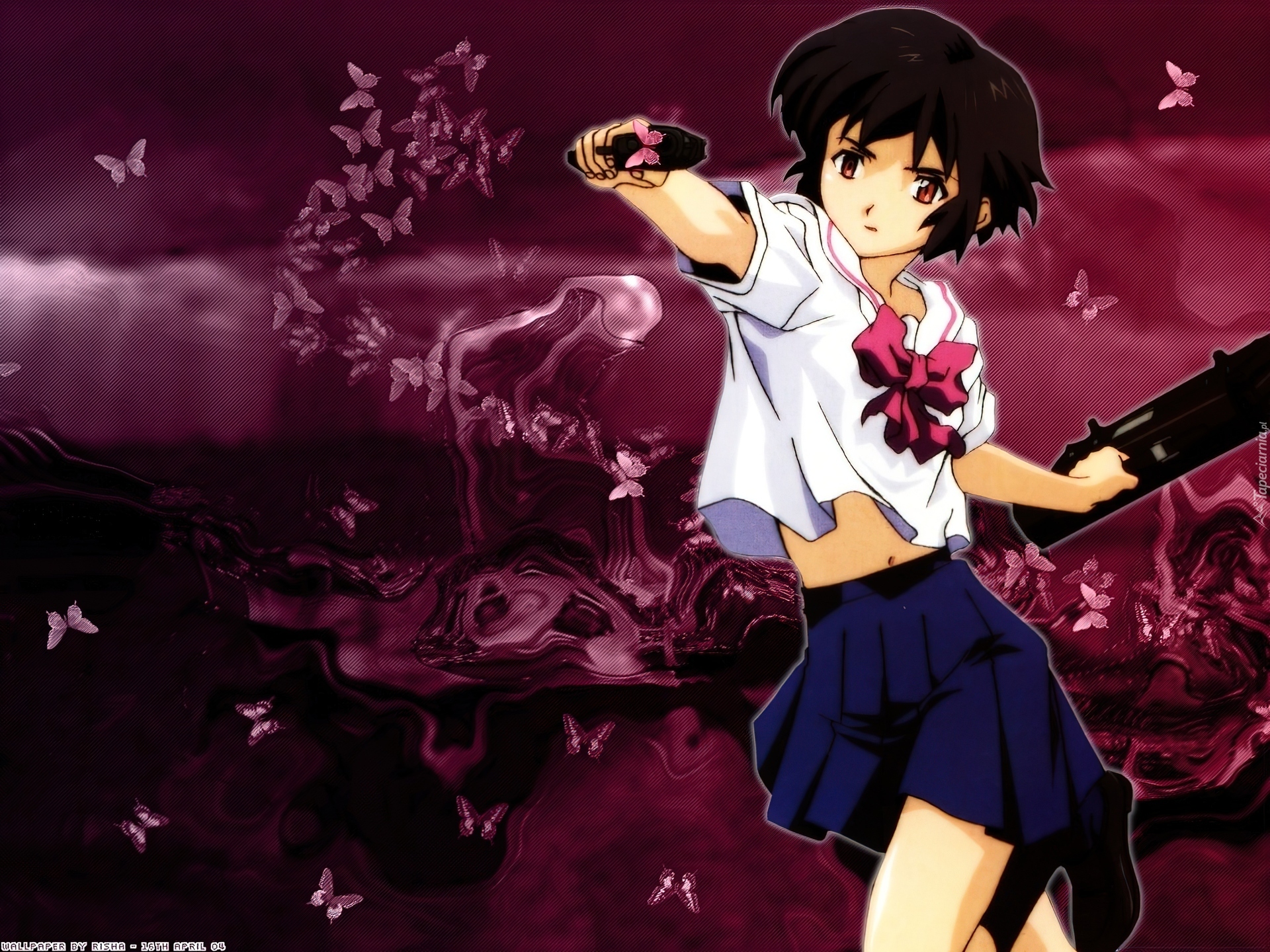 Edytor tapety: motyle, Noir, pistolet, kobieta
