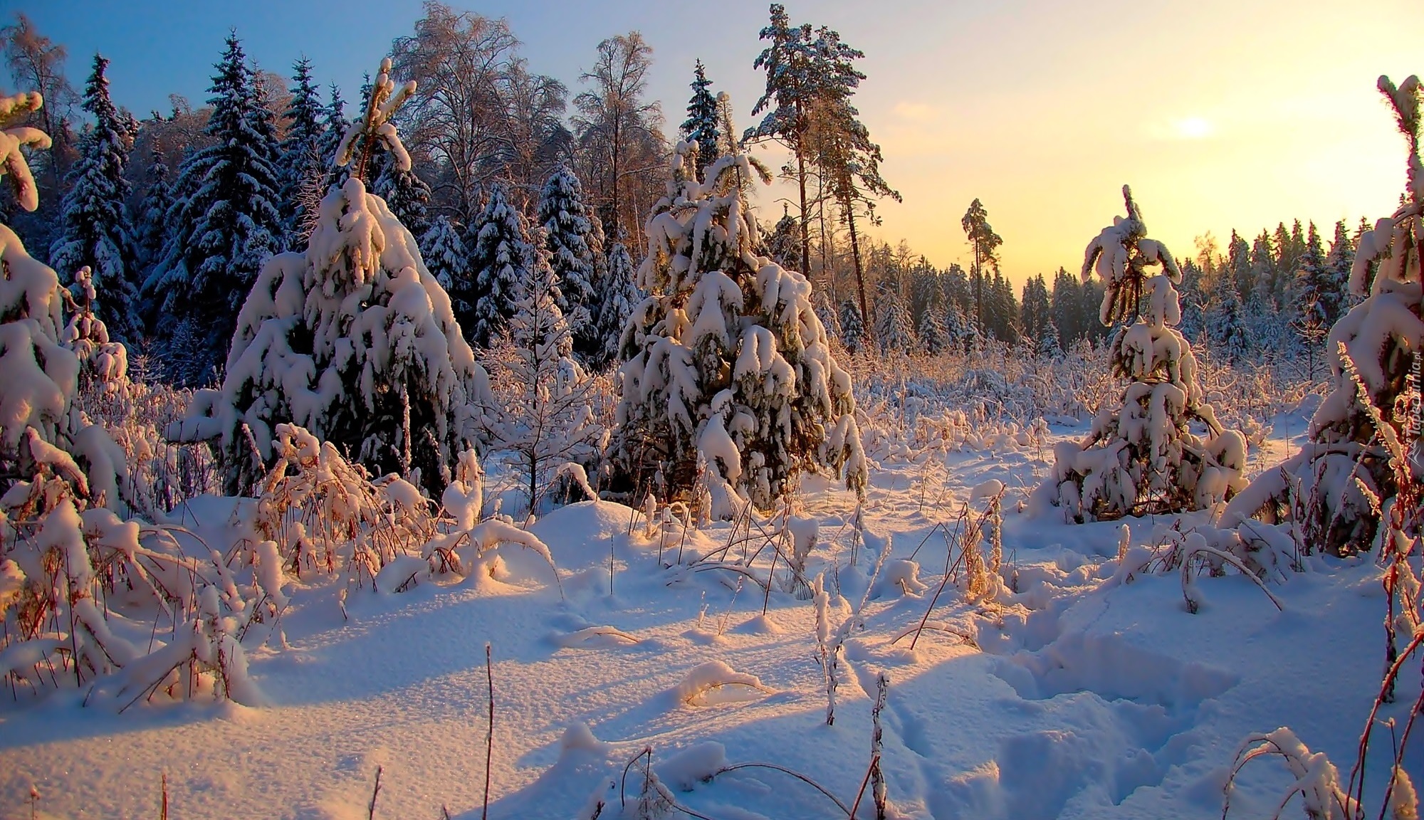 Edytor tapety: Słońce zawitało do ośnieżonego lasu
