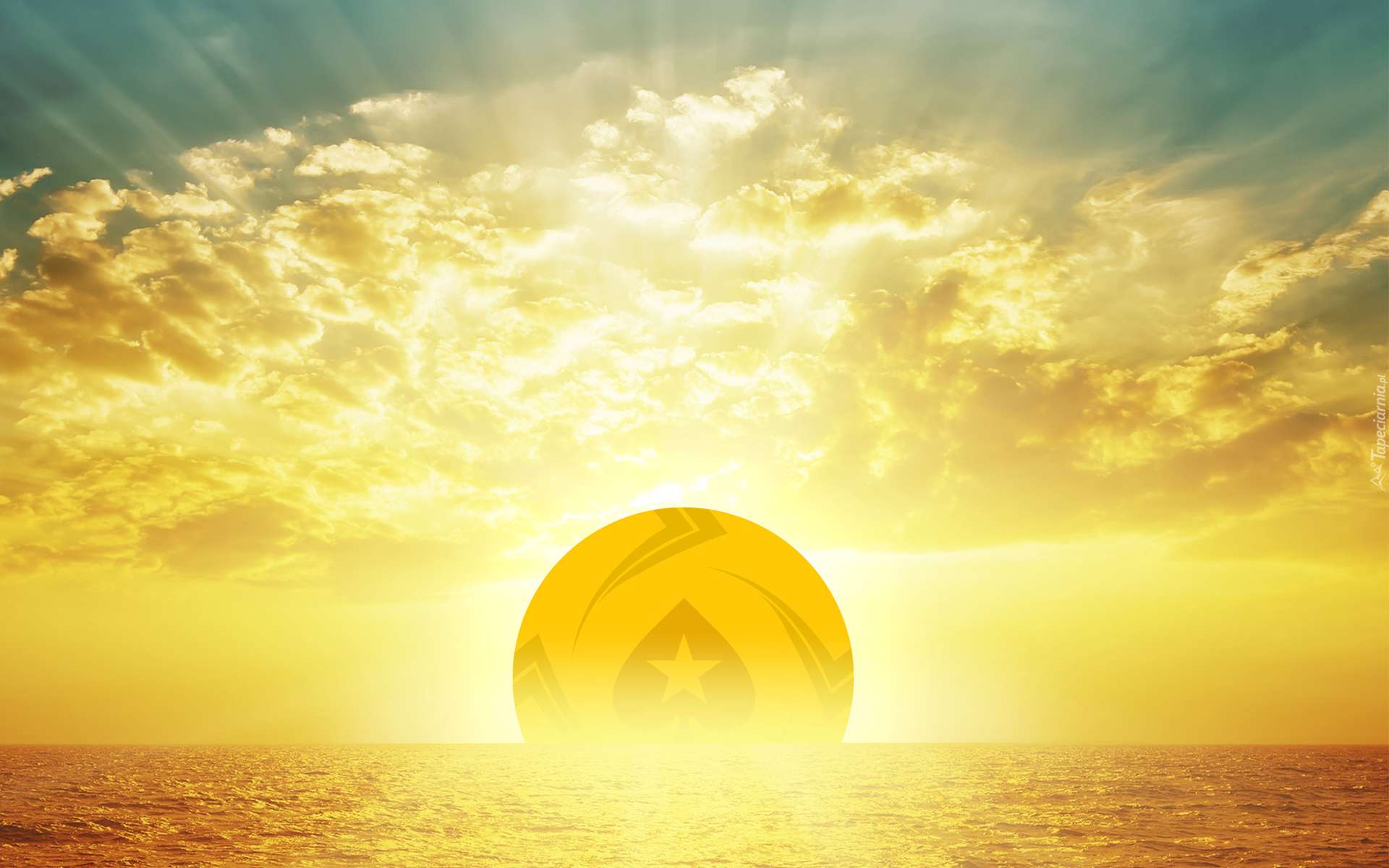 Edytor tapety: Wschód słońca z logo PokerStars nad morzem