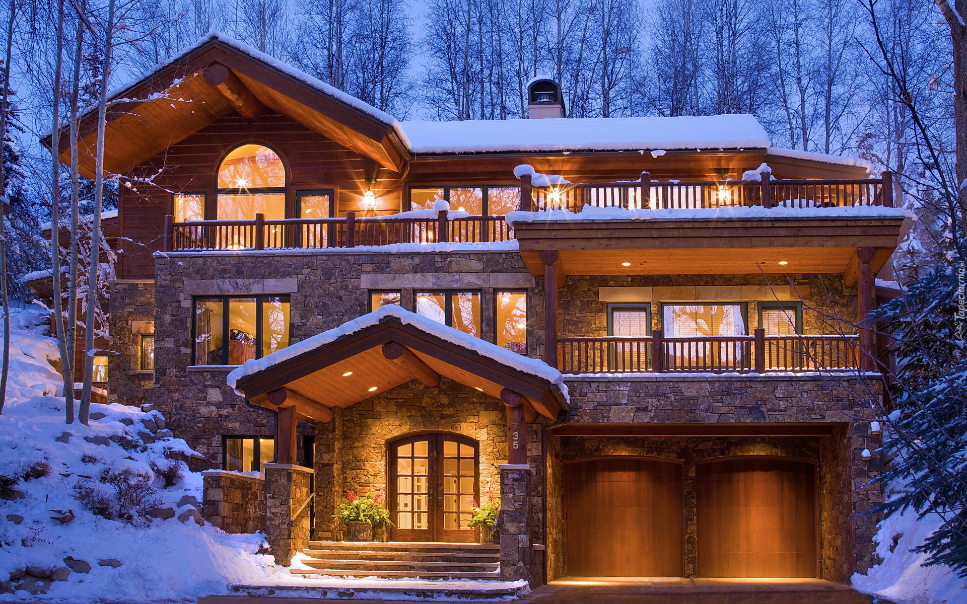 Edytor tapety: Dom w Aspen w zimowym, wieczornym krajobrazie